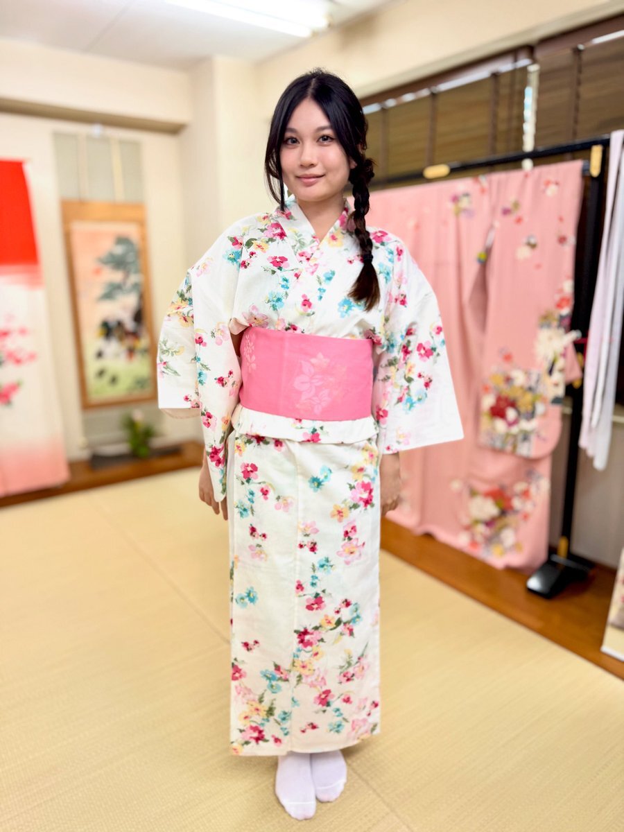 そうなんです。女性スタッフがいない時に限って、着たまま帰りたいということが発生します。笑。下手な着付けで、申し訳ありません。でも、ありがとうございました♪可愛い! #yukata #kimonodreamers #kimonoshop #ueno #akihabara #suehirocho pic.x.com/QZX8FdILOr