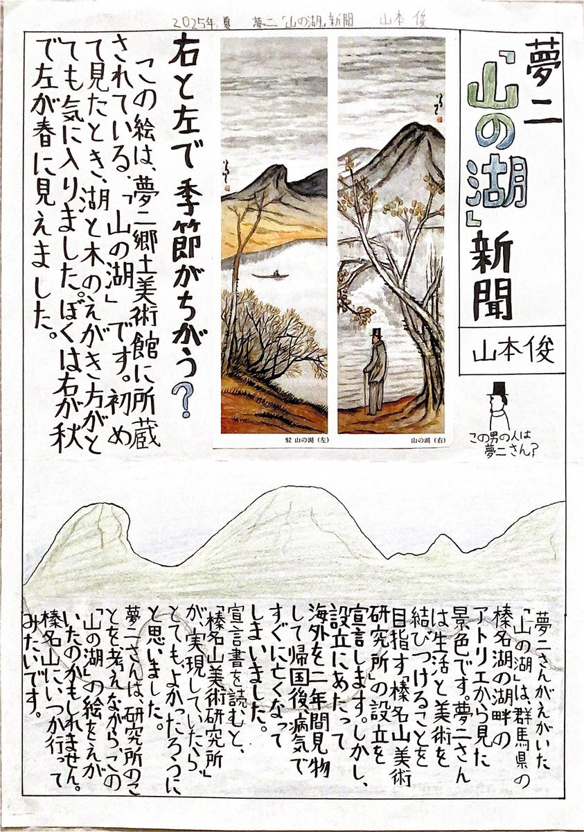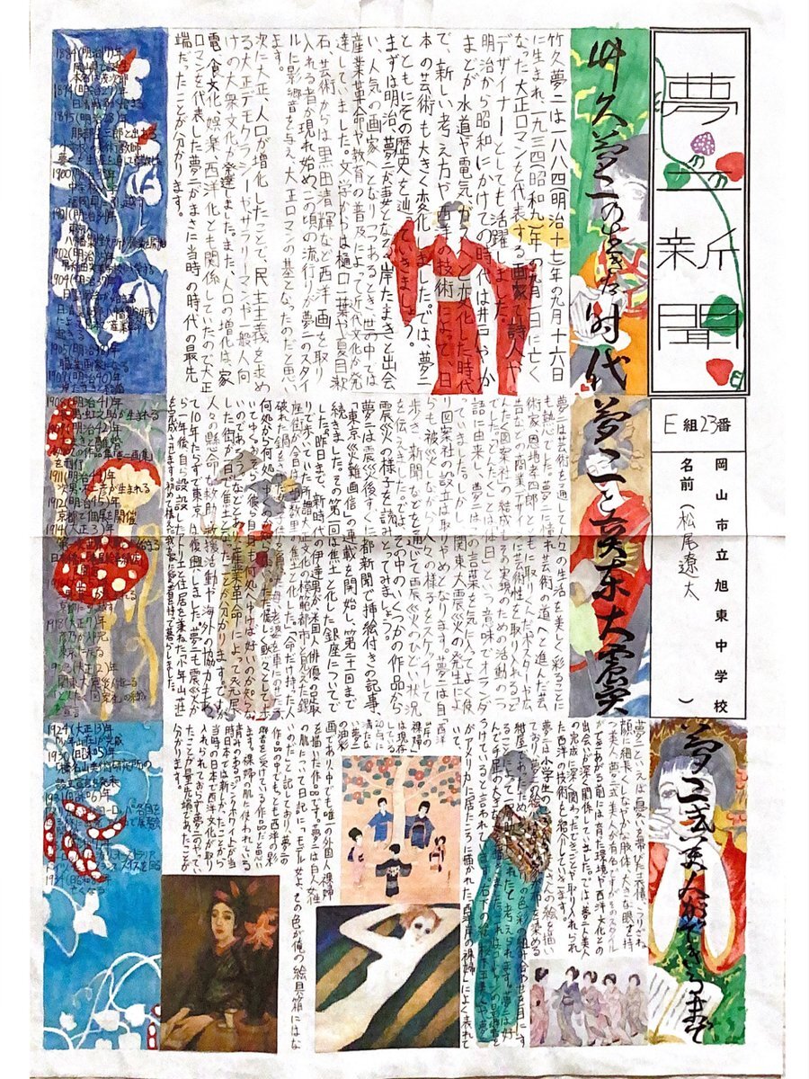 第15回「こども夢二新聞」受賞作品を順次ご紹介します! まず館長賞に輝いたのはこちらの作品!🏆 🌟松尾遼太さん 受賞作品は現在夢二郷土美術館本館で展示中です✨ #岡山 #美術館 #新聞 #夢二 #こども #壁新聞 #yumejiartmuseum #yumeji #newspaper #children #okayama pic.x.com/kUUledz7tP