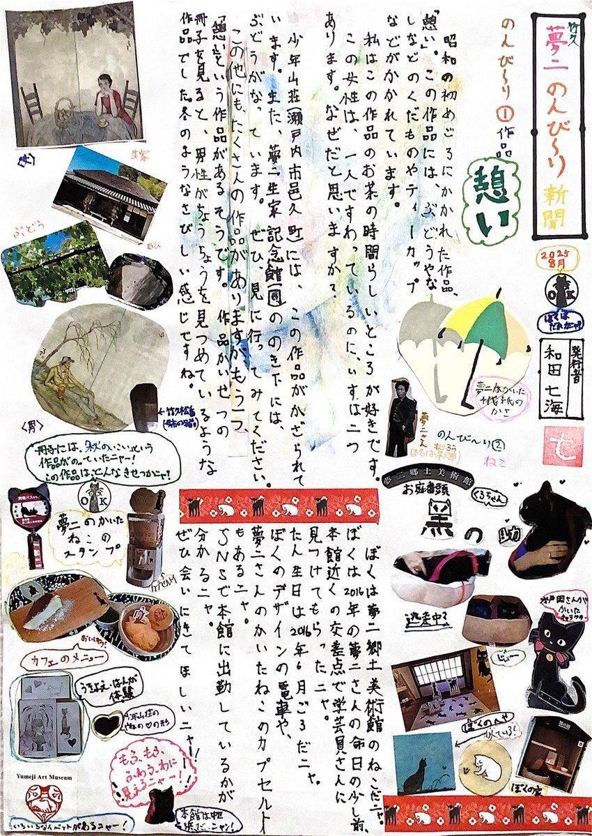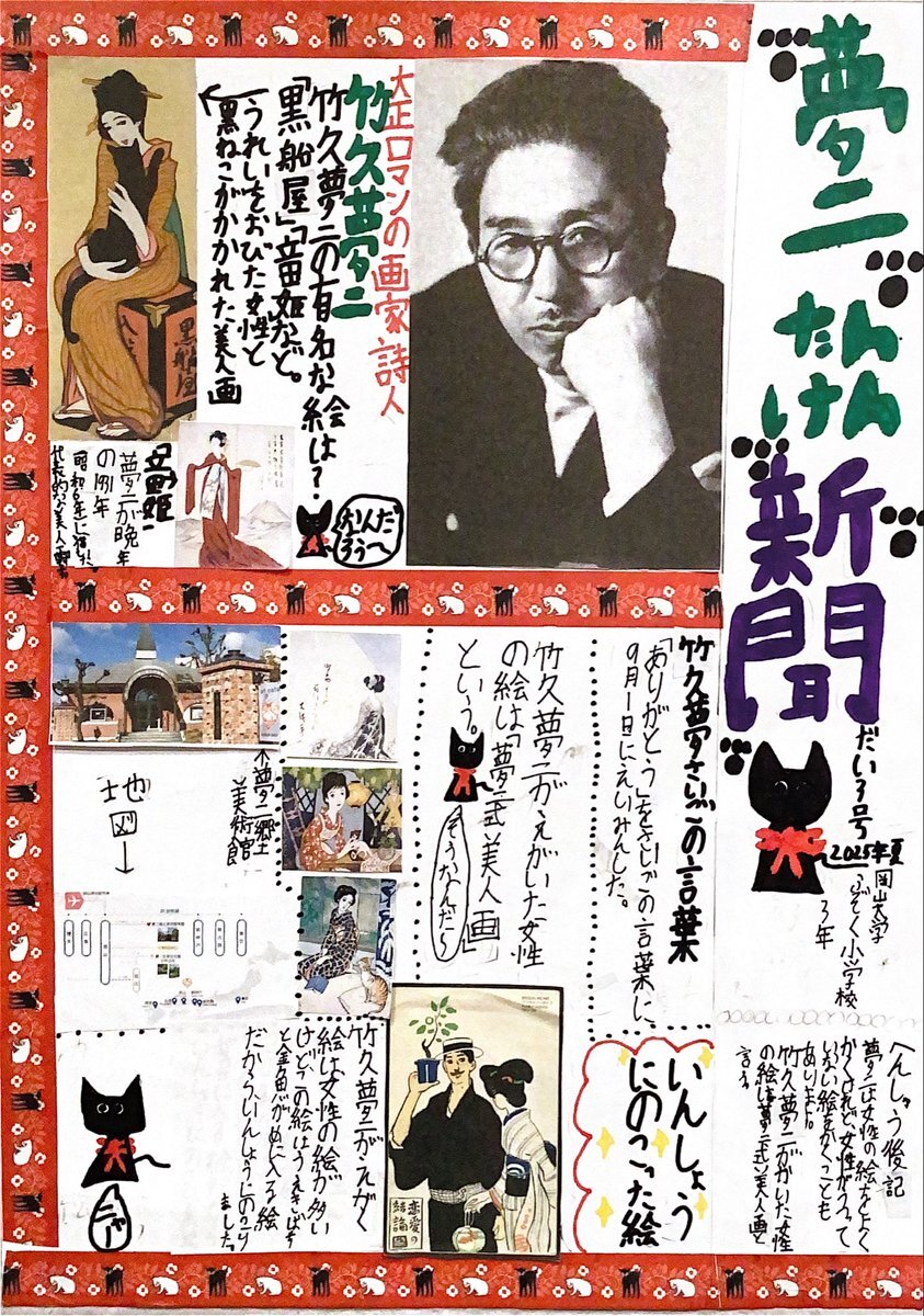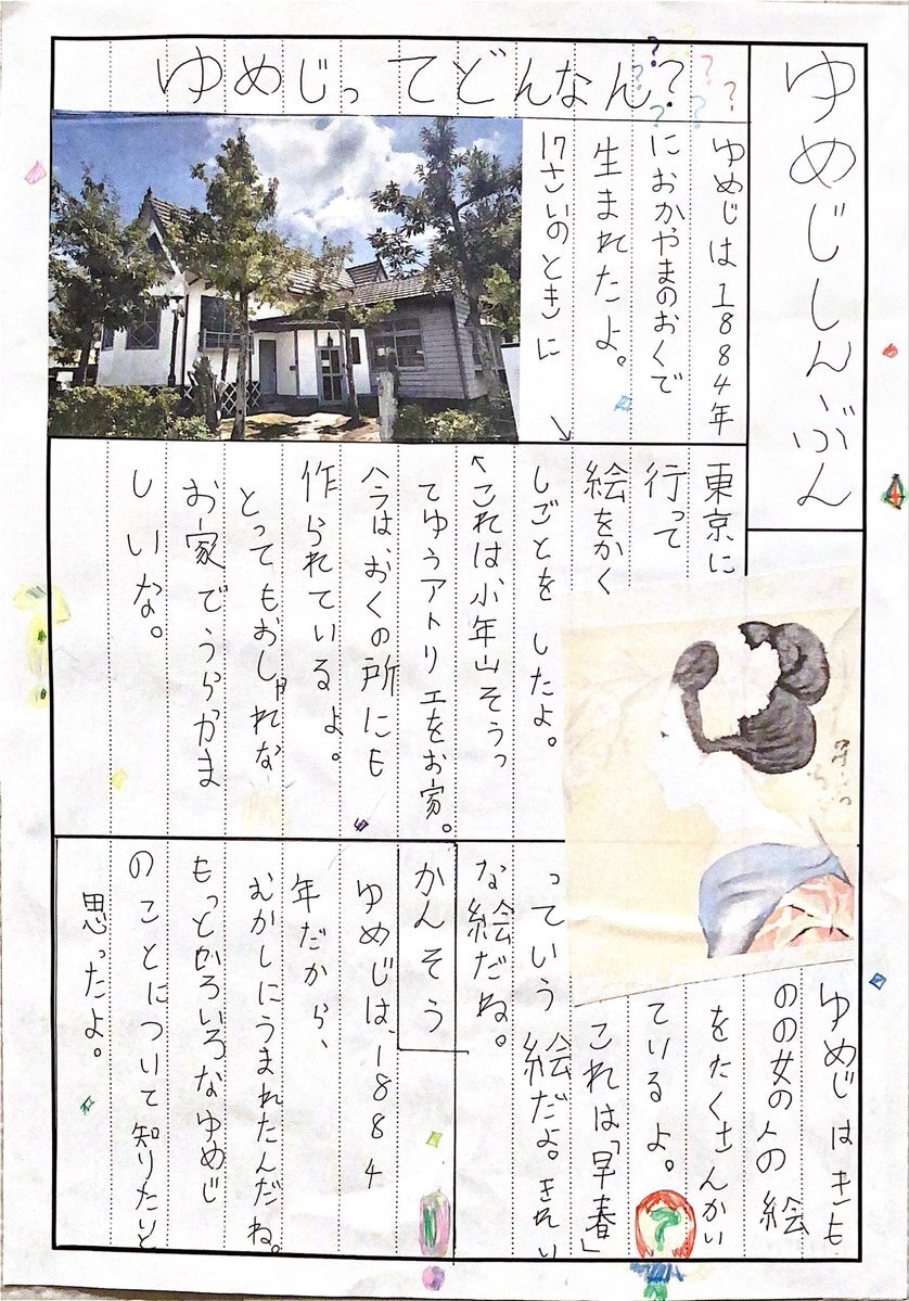 第15回「こども夢二新聞」受賞作品を順次ご紹介しております! 奨励賞に輝いた3作品の中から1つめの作品をご紹介🏆 🌟竹端暖乃さん 受賞作品は現在夢二郷土美術館本館で展示中です✨ #岡山 #美術館 #新聞 #夢二 #こども #壁新聞 #yumejiartmuseum #yumeji #newspaper #children #okayama pic.x.com/AtmUfOEaKk