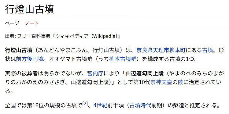 引用元の投稿をするためにいろいろ調べていたら、Wikipediaの当該記事(書きかけ)に、帆立貝形古墳の代表例として奈良県の行燈山古墳(伝崇神天皇陵)が上がっていて目が点になったんだが。 行燈山古墳は4世紀後半の早い時期に築造されたと考えられていて、墳丘長は242㍍、後円部径が約158㍍で、⇨ x.com/Yamato_Ouken/s…
