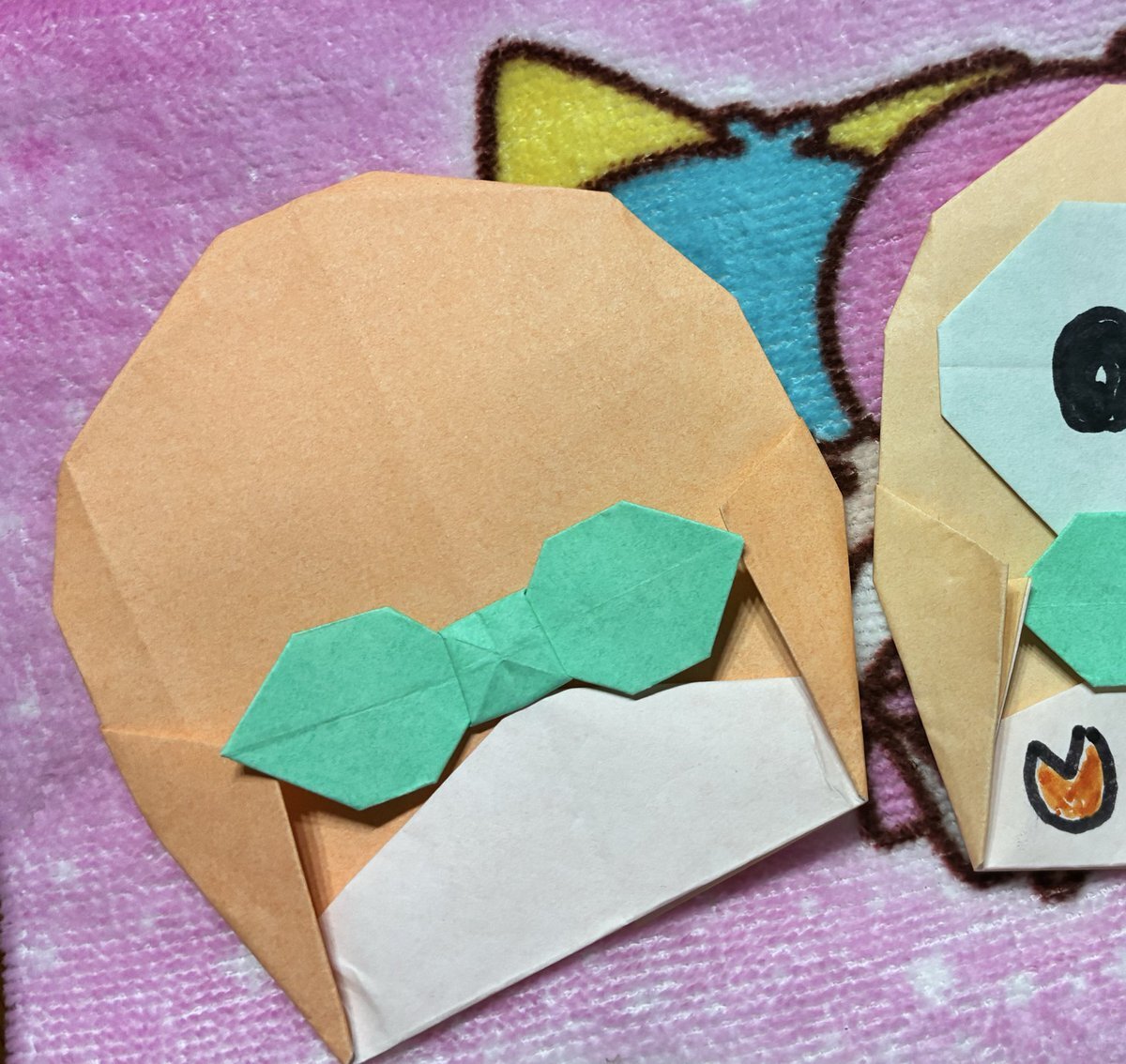 六年間一緒に過ごしたにゃんこが旅立って、でもメソメソしとれへん!とりあえず手を動かそうと思って友達に折り紙でモクロー作ってた。魂は吹き込んでもらうスタイルで行こうと思う pic.x.com/Ipt36jzqoE