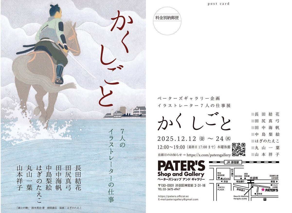 【TIS会員の展示】 イラストレーター7人の仕事展 「かくしごと」 長田結花さん @yhantou 田尻真弓さん @tajirimayumi 田中海帆さん @mihot0304 はぎのたえこさん @Qtako2021 丸山一葉さん @kazupits 山本祥子さん @sachico1201 他 原宿 PATER'S Shop and Galleryにて ~2025年12月24日(水) ※木定休 pic.x.com/GMoTSTEF3y