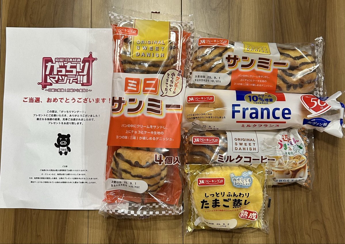 ご報告遅くなりました🙇‍♀️ がっちりマンデー!!様@gacchiri_m より、 7/27(日)放送『儲かる地元パン』に登場したYKベーキングカンパニーの「菓子パン詰め合わせ 5種」が届きました╰(*´︶`*)╯♡ パン大好き子どもたち大喜び‼️甘くてフワフワなパン美味しかったです😋✨✨ ありがとうございました💖 pic.x.com/LGyi1RjS2P