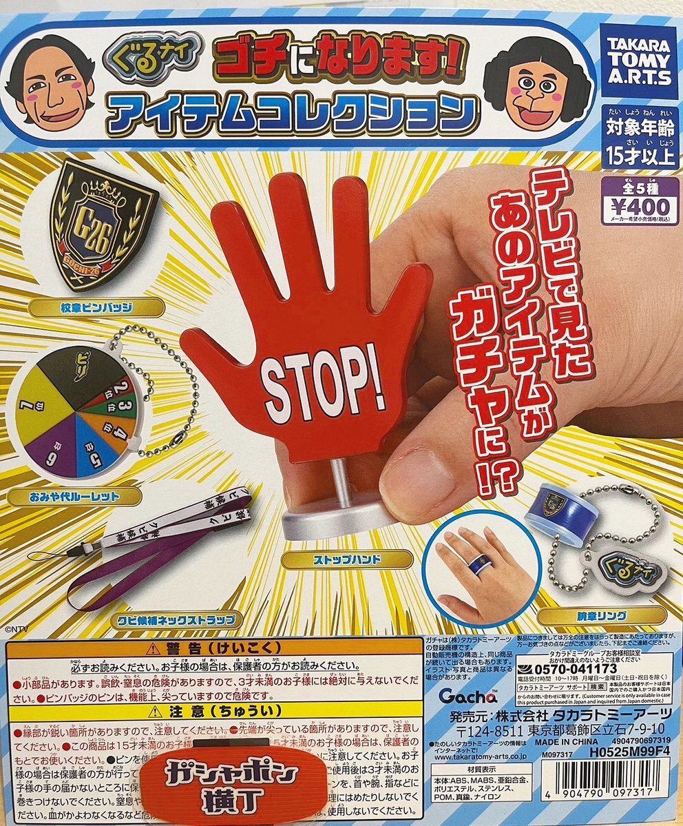 ✋🏻ぐるナイ ゴチになります! アイテムコレクション🍴 テレビで見たあのアイテムが #ガチャガチャ に👀 『 #ぐるぐるナインティナイン 』の人気コーナー「 #ゴチになります !」のアイテムをフィーチャーした、ユニークなガチャが登場🎉 全5種1回400円 #ガシャポン横丁雷門店 pic.x.com/SQLLURPL2J