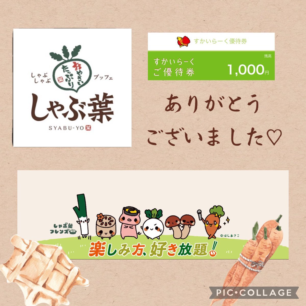 しゃぶ葉【公式】さま(@syabuyou_PR ) 『8月度 #私のしゃぶ葉日記 フォロー投稿キャンペーン』にて すかいらーくご優待券1,000円分当選させて頂きました✨ お鍋はもちろんデザートも美味しいので 我が家の大好きなお店です💗 ご報告が遅くなり申し訳ありません🙇🏻♀️ この度はありがとうございました💕 pic.x.com/CSCuV1KBFb