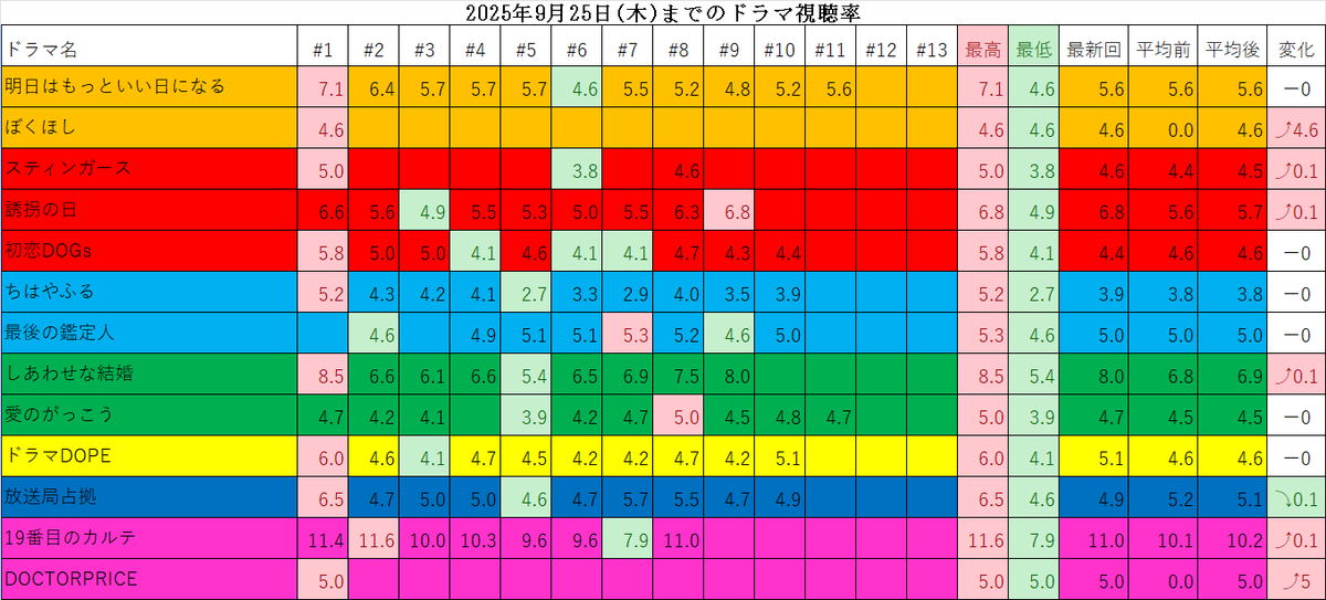 夏ドラマ シーズン平均視聴率 *5.6 明日はもっといい日になる *4.6 初恋DOGs *3.8 ちはやふる *4.5 愛のがっこう *5.2 放送局占拠 drama-uwasa.com/drama-shichour…