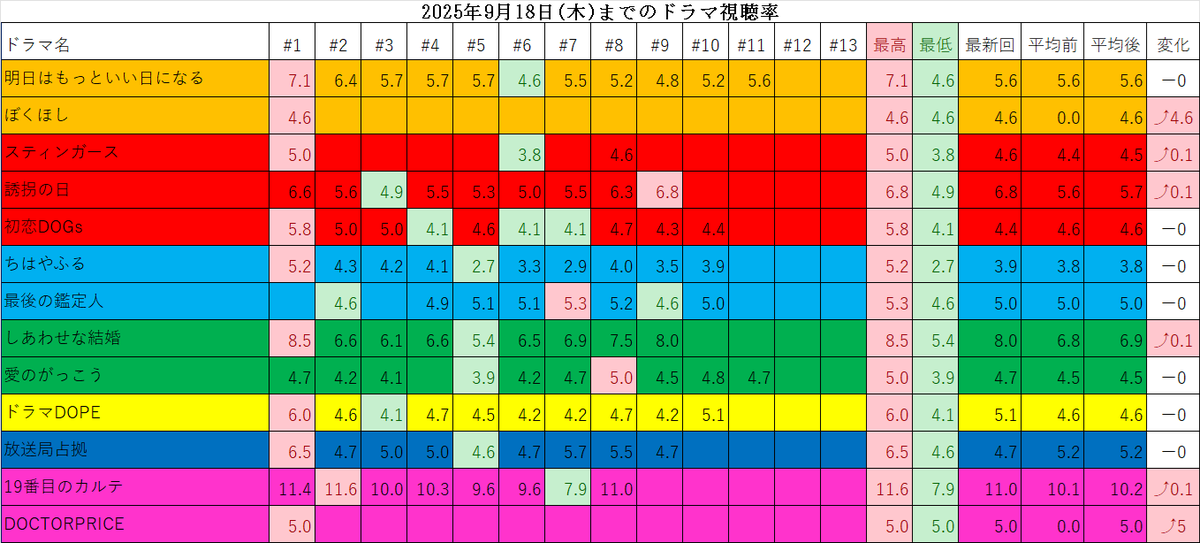 夏ドラマ シーズン平均視聴率 *5.6 明日はもっといい日になる *4.6 初恋DOGs *3.8 ちはやふる *4.5 愛のがっこう *5.1 放送局占拠 drama-uwasa.com/drama-shichour…