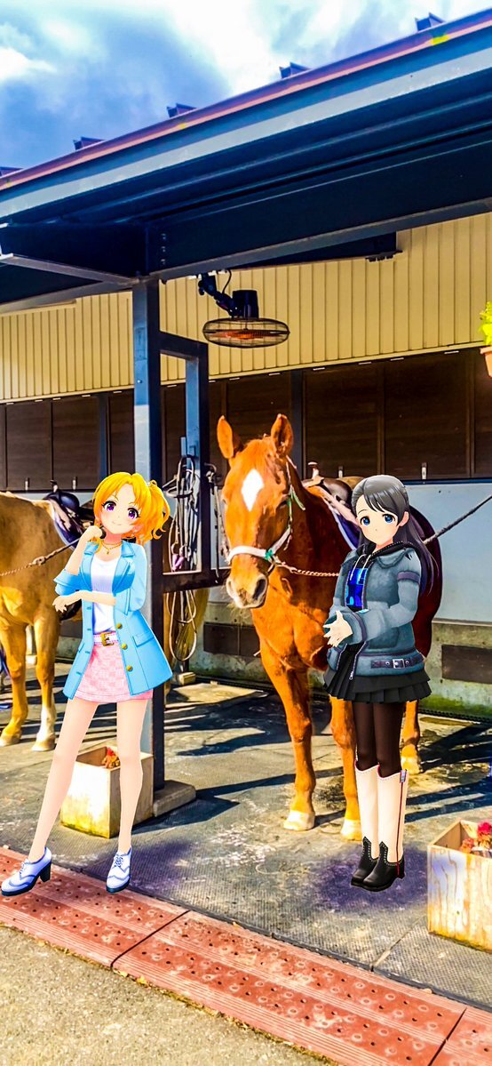 続いて訪れたのは蒜山ホースパーク 最近ザ・ロイヤルファミリーに影響されたと思われるつかさ社長と栗原秘書を撮ってみました🐎 あと来年の年賀状用にもパシャリ📷 #桐生つかさ #栗原ネネ #デレスポAR pic.x.com/SZ0mMEJvtV