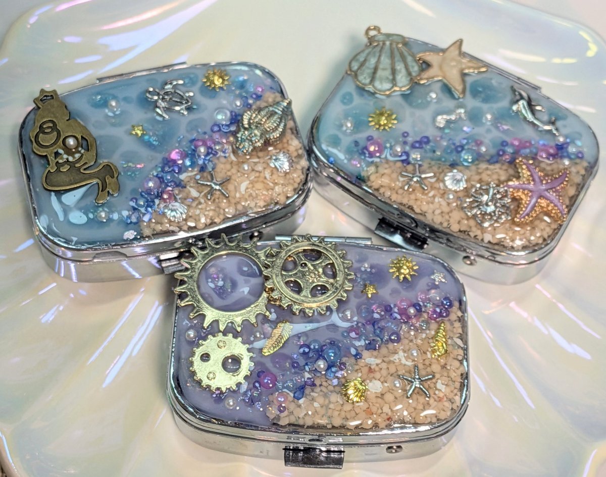 海塗りの小物入れ🌊 やっと3つ完成✨ 色んなタイプの装飾してみました どうでしょう?🤔 自画自賛✨まだまだレジン練習中🖊だけど上出来ではないでしょうか🥰️ #レジン #海塗り #ハンドメイド作品 #こまりっこローガンズ pic.x.com/1K4qJLYRX3