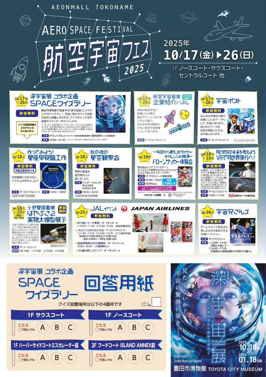 【イベント@愛知】 2025/10/17(土)〜26(日)はイオンモール常滑の \航空宇宙フェス2025/へ!! イオンモール常滑10周年祭同時開催🏆 リーマンサットは #宇宙ポスト 他で参加します🌟 #趣味は宇宙開発