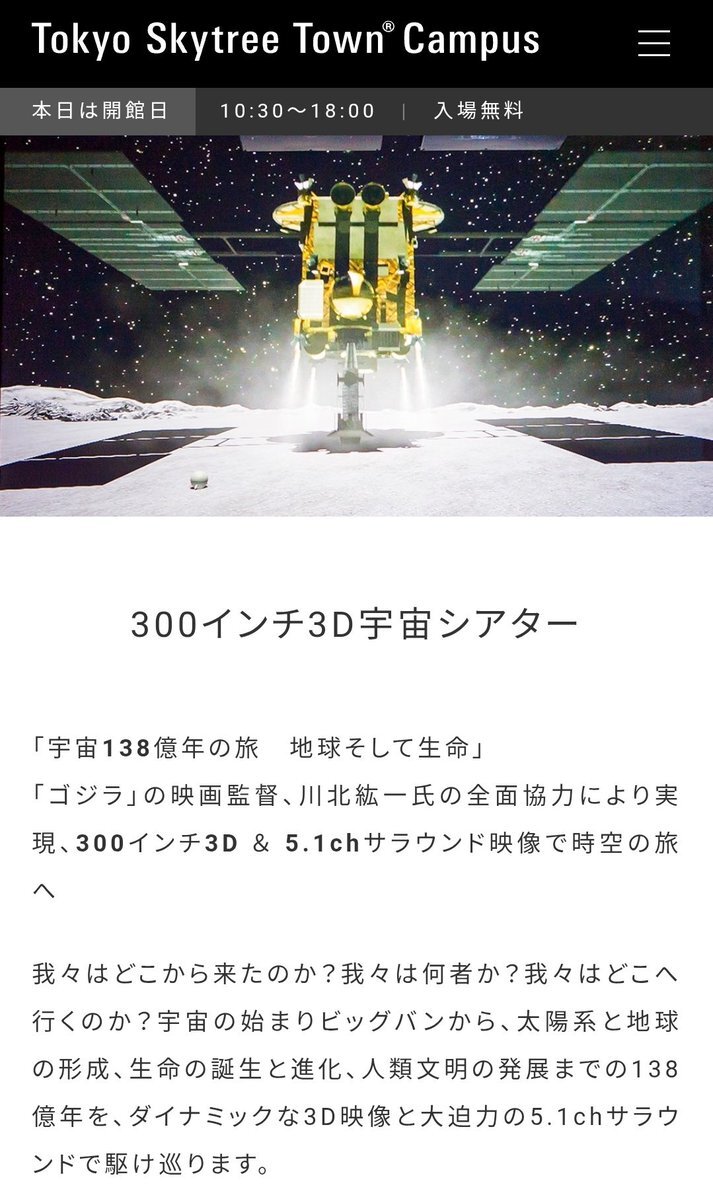 コラボでソラマチに行かれる方へ🛰️ ソラマチ内の千葉工業大学の展示は、はやぶさ2実物大模型とか触ることができる隕石もあって充実しているうえ、土日は3Dシアターも無料で見られます🚀(1日5回上映あり・平日は2D版) pic.x.com/yuSNaCya9J