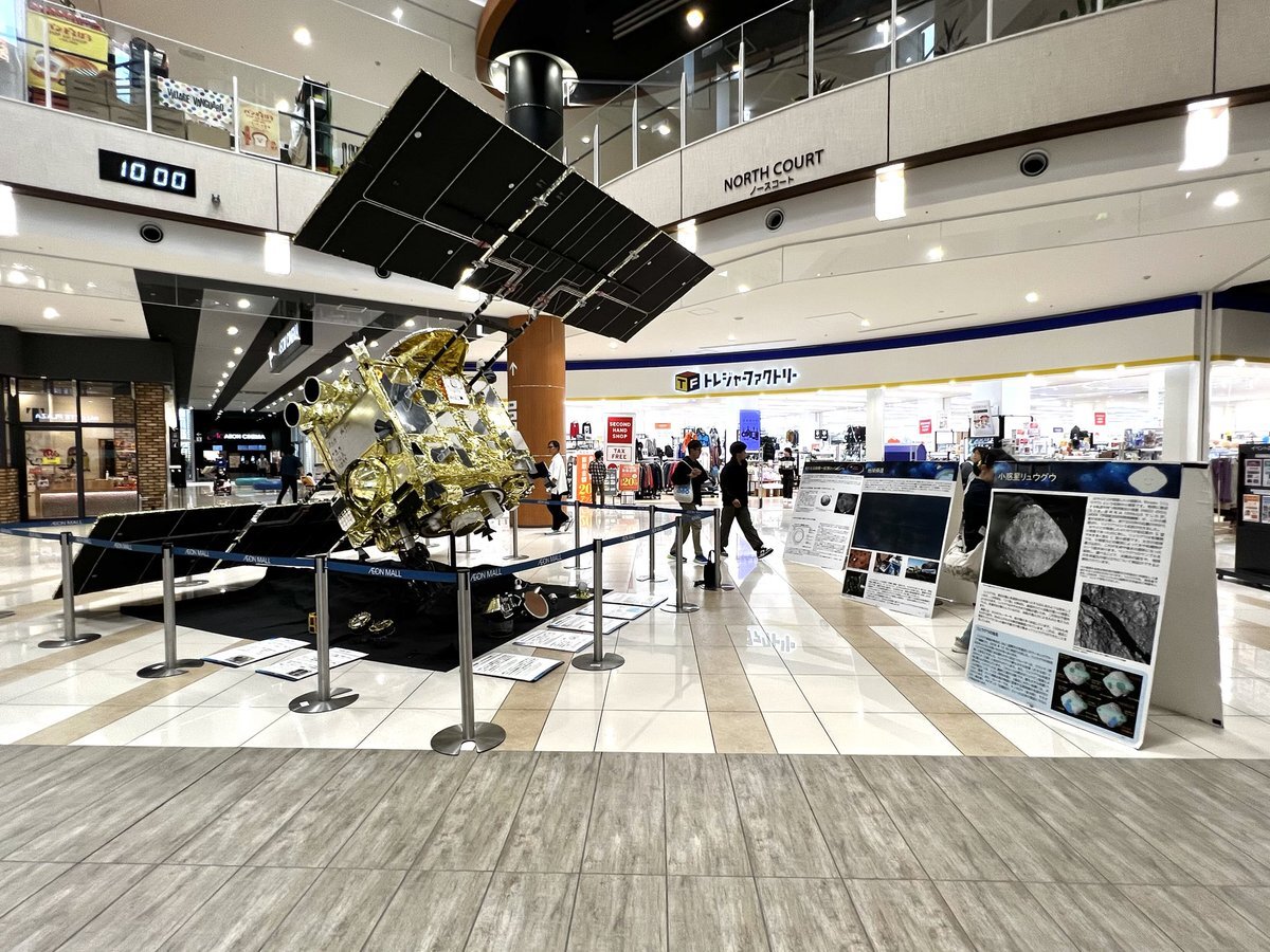 #はやぶさ2 #たけとよモデル イオンモール常滑 航空宇宙フェス2025 はやぶさ2実物大模型を開店前に搬入・組み立て 本日10月18日(土)から23日(木)まで展示で、明日の19日には、1日3回ほど私による生解説を行います。 これではやぶさ2実物大模型はのべ113回の展示となりました^_^ pic.x.com/Pce0fGvo1s