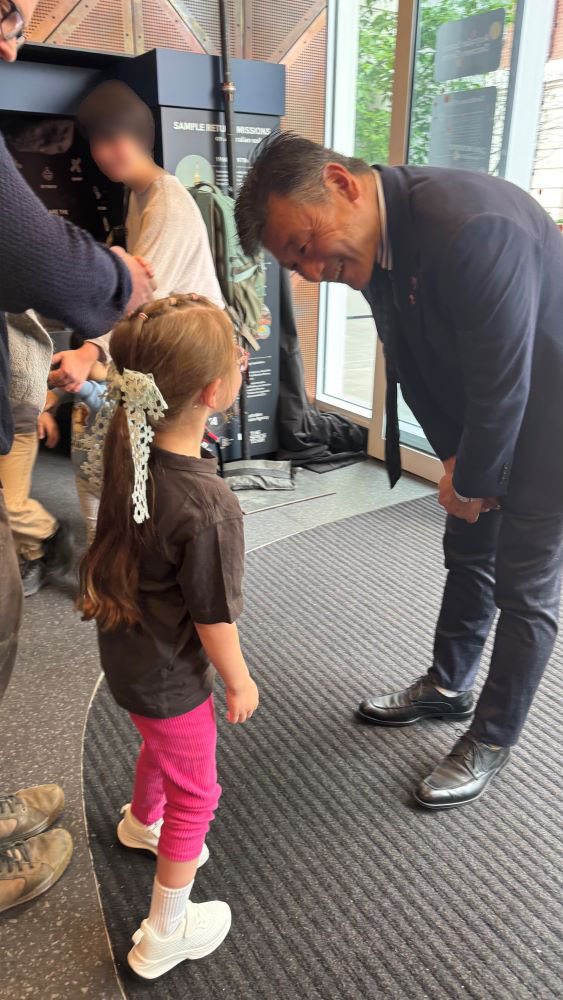 ASDCでの式典の後、藤本所長による特別講演🎤も開催。はやぶさ2、SLIM、そしてMMXと、宇宙研のミッションを紹介し、オーストラリアとの関係についてユーモアあふれる内容で会場は笑いに。 小惑星「りゅうぐう」の粒子に来場者は興味津々。藤本所長は、子供からの質問にもやさしく答えていました👧👦💬 pic.x.com/onBNsXWBVK