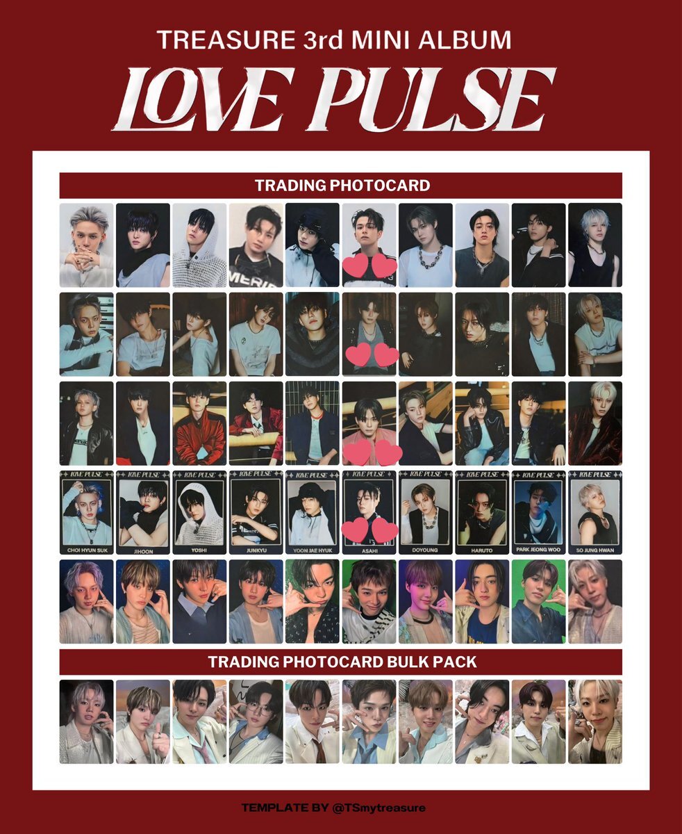 treasure PULSE ON ソウルコン LOVE PULSE album 特典 交換 트레저 앨범 특전 교환구해요 【譲】 ヒョンソク ドヨン ジョンファン 【求】同種アサヒ ジフン イルツ手渡し又は都内手渡し お気軽にリプください😌 #treasure交換 pic.x.com/28NSJ7LJk2
