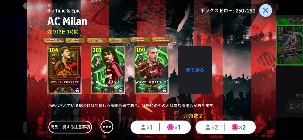 2人目は60連でガットゥーゾ!! これは危険な匂いがするぞ…笑 先代はガチスカで結構愛用してるから乗り換え出来るのは嬉しい✨ #eFootball2026 #イーフト #Hazard #アザール #イブラヒモビッチ #フリット #ミラン x.com/hazarddegozard…