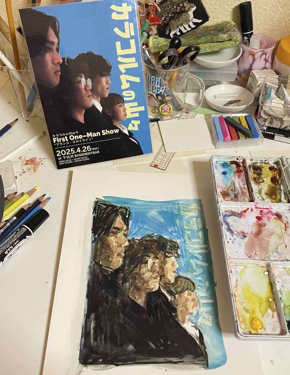 絵なんて中学校以来描いたことのなかった旦那が、百均で絵の具と筆買って、面会後ハウスで黙々何かしてるなと思ったら、病室からの夕暮れ描いてた。 私はど素人の割にはうまいと思ったんだけど、本人曰く「みんなこのくらい書けるやろ、普通や」だそう、、