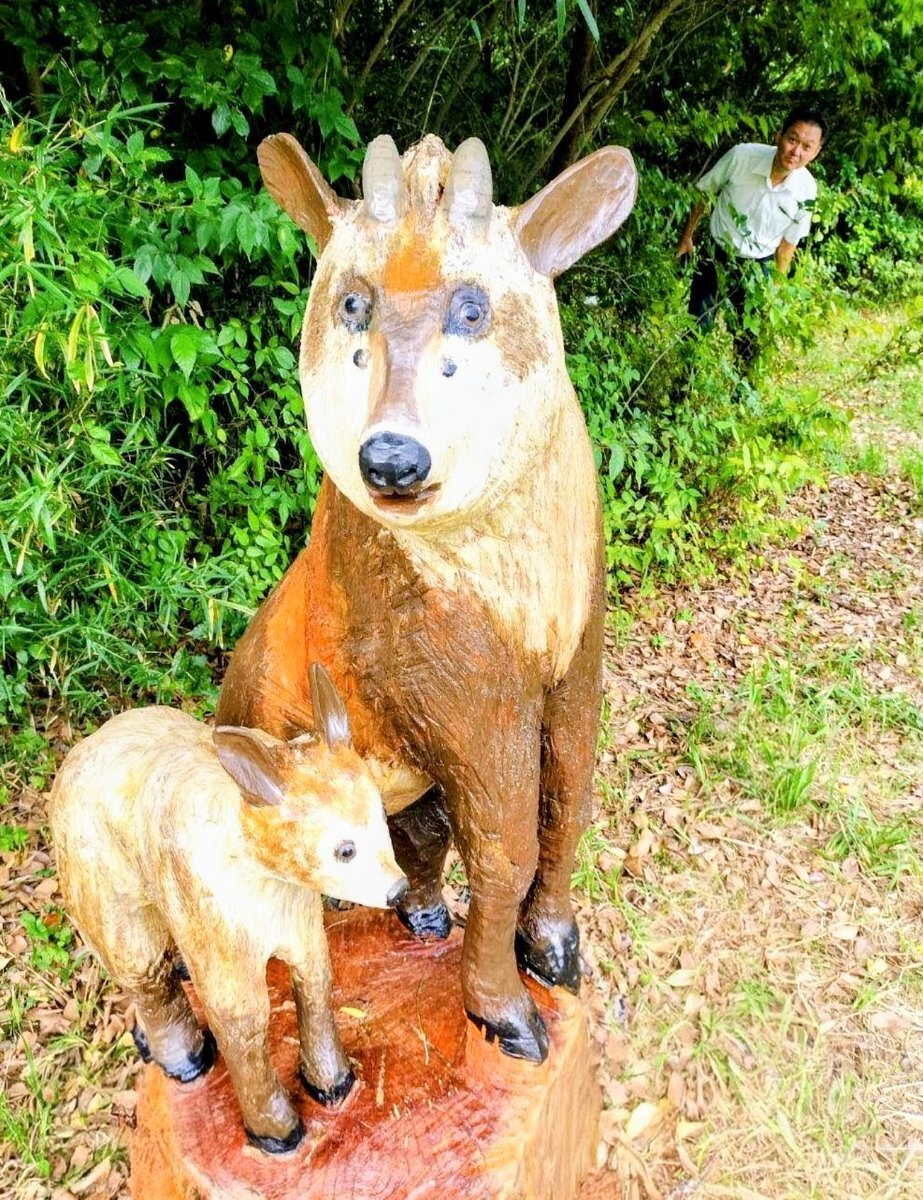 午前中、あるご婦人から、暗い夜道の安全対策を望む声が届きました☘️ そこで、市が管理する照明灯の設置や町内会が設置する防犯灯に補助金を交付する事業をお伝えしました☘️ こうして現場を走りながら、お昼時に所沢航空記念公園を散策です😊 すると、林の陰にニホンカモシカと思われる親子が・・・