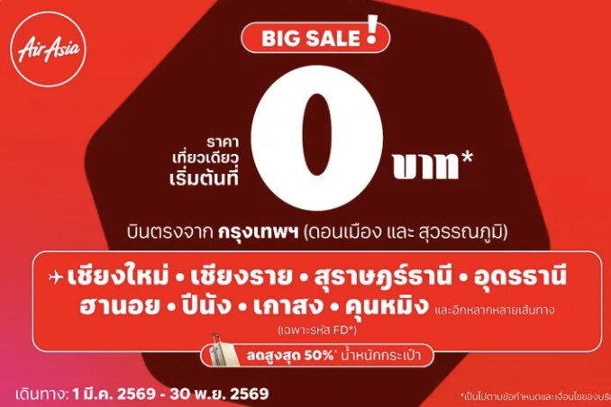 エアアジア、20%OFFから最大80%OFFに!全便全席セールを実施 thaich.net/news/20251013c… 2026年3月以降出発の全便・全席を対象に、通常運賃の20%〜最大80%OFFとなる「史上最強セール」 pic.x.com/MfpiSJmDm1