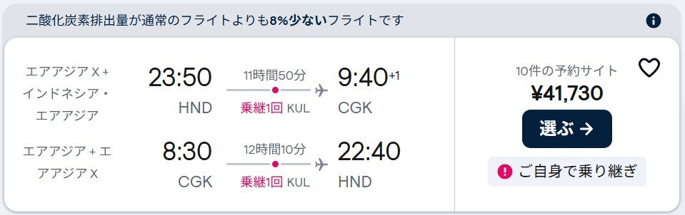 エアアジアのセール、お!と思って東京まで調べてみたら行きはそこそこ安いけど帰りが全然高くてフルサービスで最寄り空港まで通しで買ったほうが若干安かった。残念。でもやはり経由地ないと選択肢増えるよなぁ。くぅ。