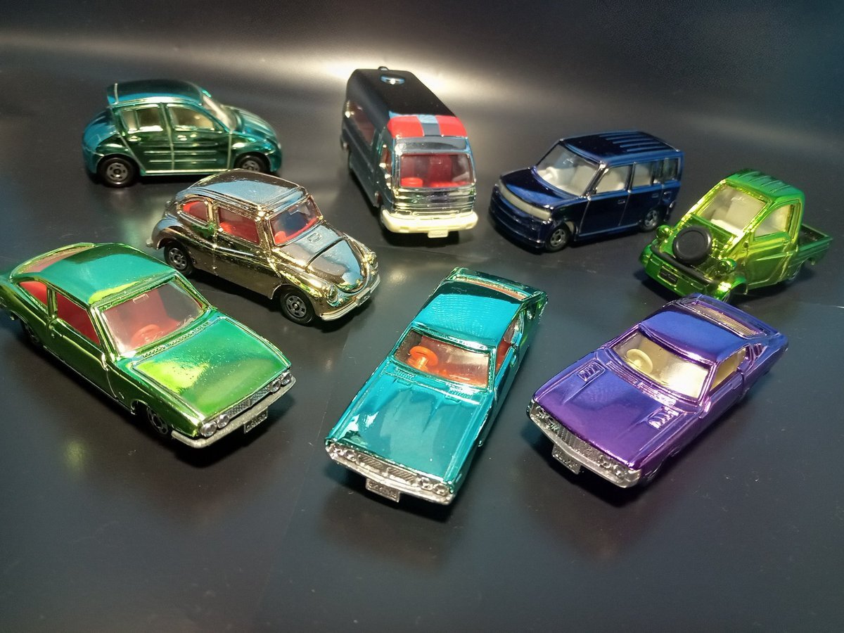 真空メッキという方法で登場したキラキラたち。エキセントリックな外国製しか知らなかった私は、トミカが出た時その繊細さとリアルさに取り憑かれた。だからこのメッキが定番で並びだした時は「やめてくれ〜」だった。だが、他の子らはめっちゃ喜んでたなー…う〜ん…#トミカ pic.x.com/42zPISqhbO