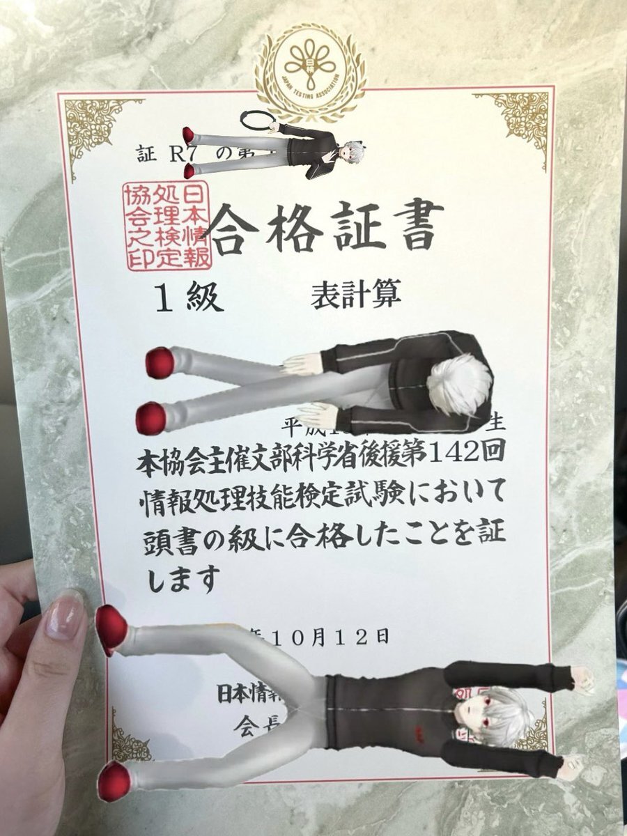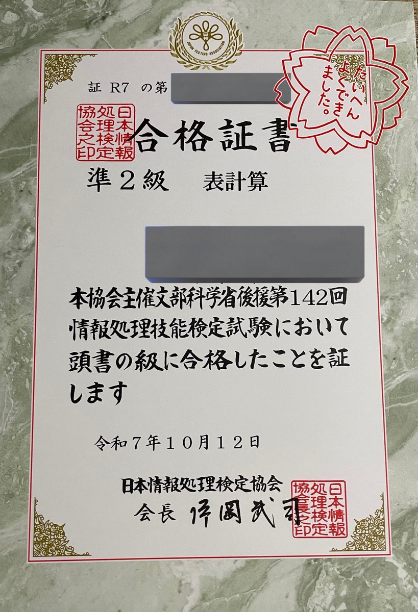 本日エクセル表計算1級合格しました〜🥰 これで一安心です👽 pic.x.com/39z0N5cmN6