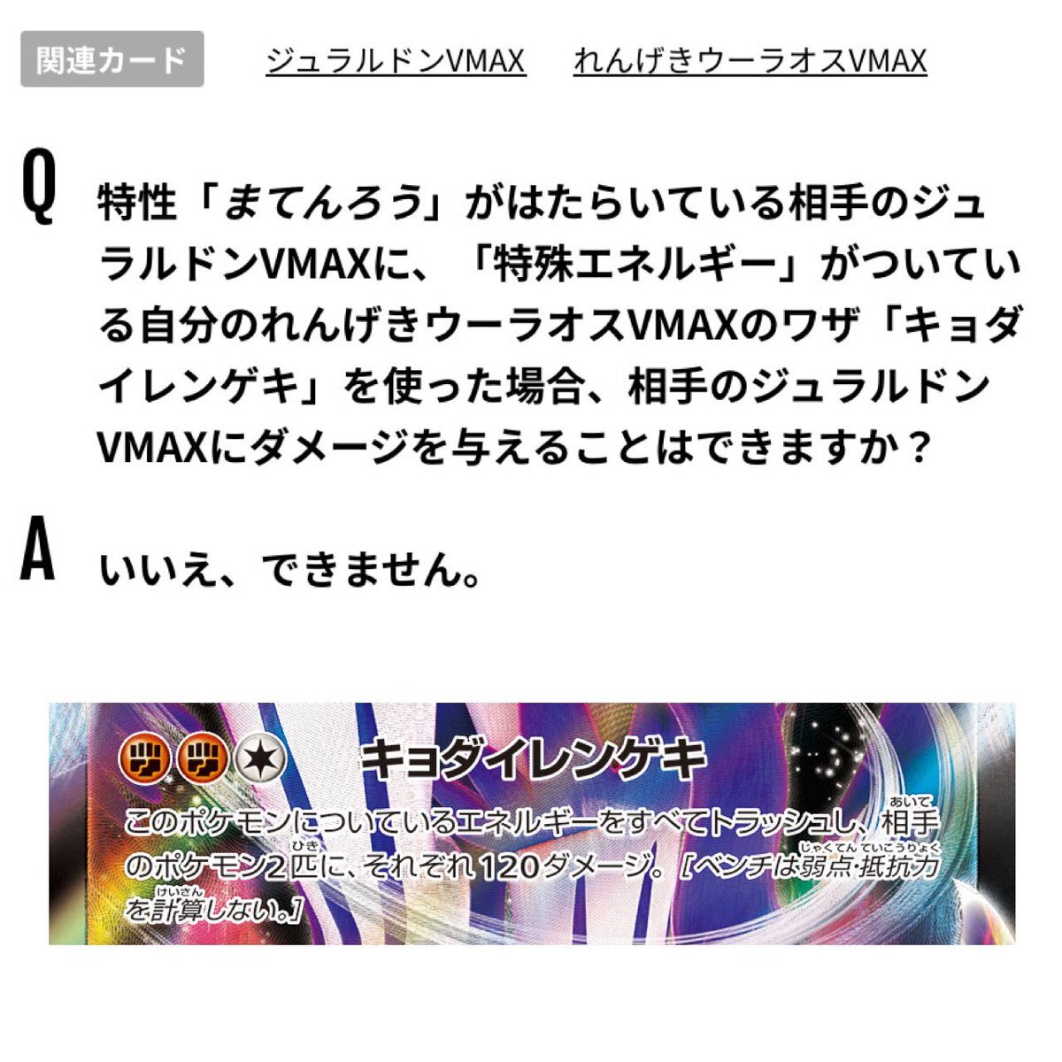 「特殊エネのついたポケモンからダメージを受けない」ポケモンには、 手順5.「ダメージ以外の効果」の途中で特殊エネをトラッシュしてもダメージを与えられない。 手順3.「ダメージを与える前に」の時点で特殊エネをトラッシュした場合、ダメージを与えることができる。 pic.x.com/cDdkkfEoSh