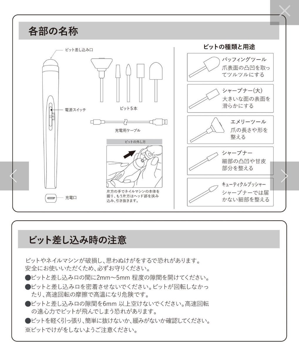 この間スリコで買ったこの電動ネイルケアマッシーン 簡単に言えばネイル用リューターだけど、今までエメリボードでごりごり削ってたのをむいむい電動でできるから楽 ビットを変えると表面のツヤ出しもできるしね 1000円! 削りすぎには注意⚠️ pic.x.com/1oA4sT9kiC