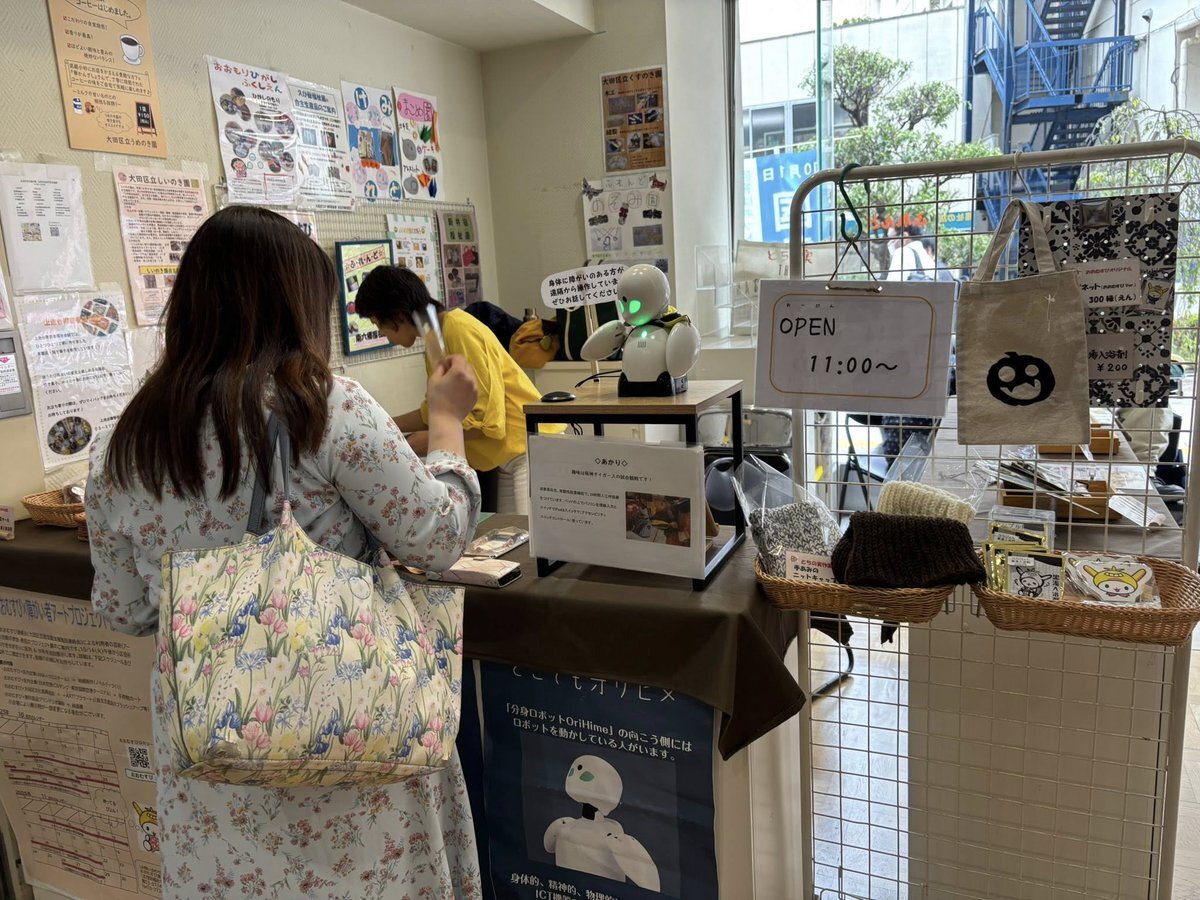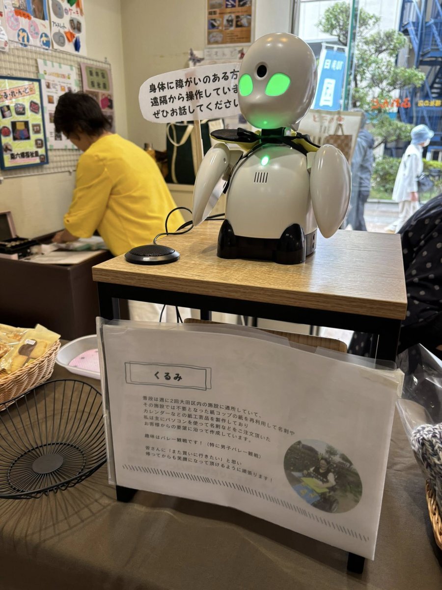 大田区役所1階で取材。区内各障害者施設の自慢の一品を販売する「おおむすび縁市場」。NPO法人「どこでもオリヒメ」によるもので、難病などで外出に困難を抱える人が交代で分身ロボット「OriHime」を使い、売り子を務めています。 #まとめて土曜日 #tbsradio facebook.com/DokoOriOta pic.x.com/vmJVxX44h2