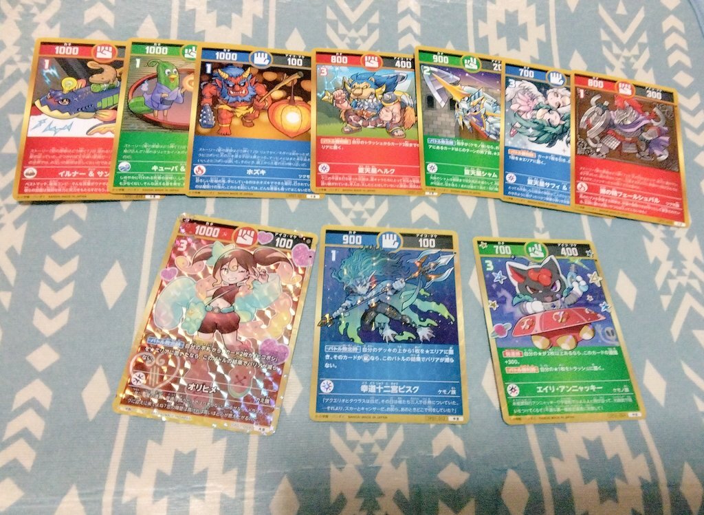 開封3パック目。まさかオリヒメとヒコボシが揃うとは。アンニャッキーも可愛いな。あと、キューバ&ナッシーも好き コスト1はどれも使いやすそうだね。このパックだけでデッキ組むなら、いっぱいいるんだろうか? 供給源がGEOしかないから不安だ。私の財布じゃ1週間3パックが限度 #開運コロシアム pic.x.com/zAJDpyE10N