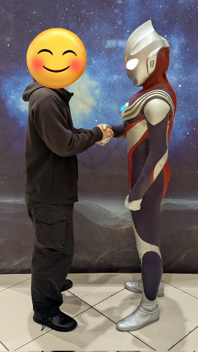 越谷レイクタウン!ウルトラマンティガと会ってきた!!!!やっぱティガかっけぇっすわ…ふつくしい トークの上手いお姉さんに「写真撮り終わったら是非顔やカラータイマーを見てみてね!」って言われてたけど緊張して見れなかった…あと握手力強かった!! #越谷レイクタウン #ウルトラマンティガ pic.x.com/2TDXRMDGnV