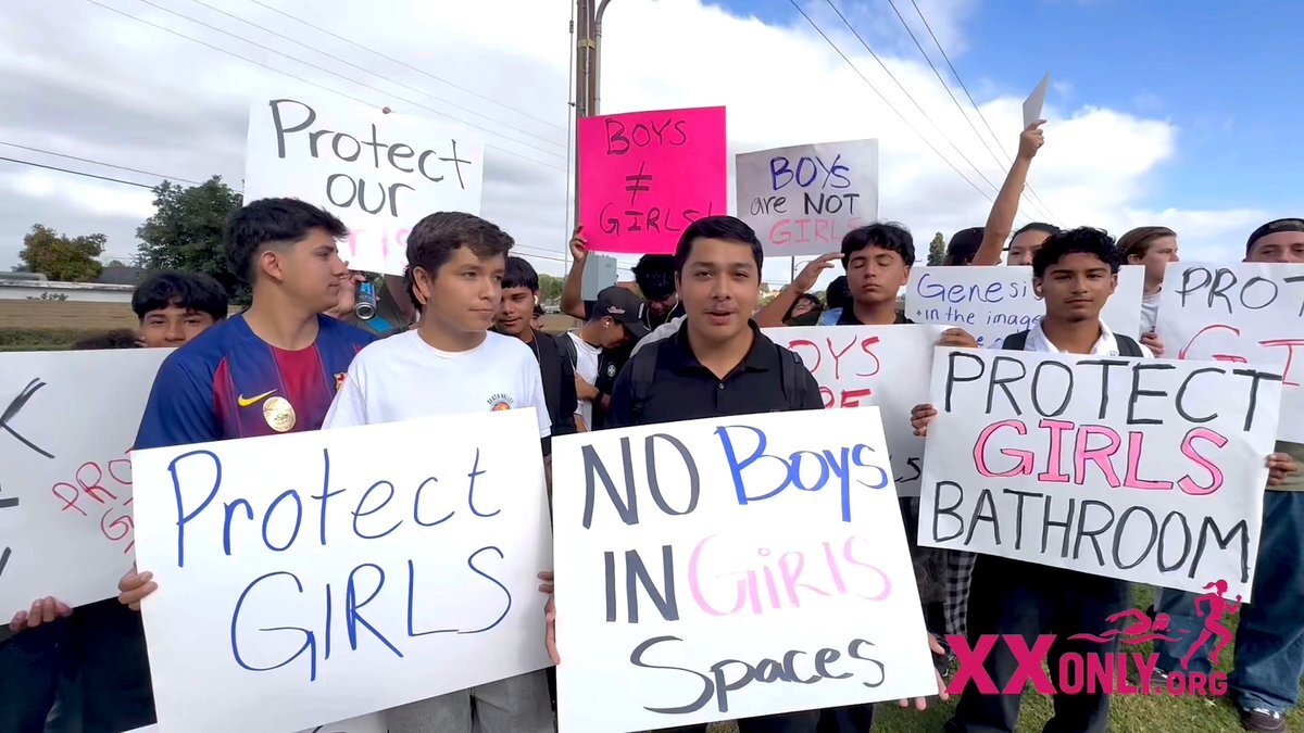 活動家よ、 子供達に言われたらやめますか? まだわからない? 今日、カリフォルニア州アナハイムで、高校3年生のレスリー・レデスマが、 男子が女子トイレを使用している問題を受けて、生徒主導のデモを計画しました。 女の子達が立ち上がりました🎉 男の子達は見守りました👍 x.com/sophiaslorey/s…