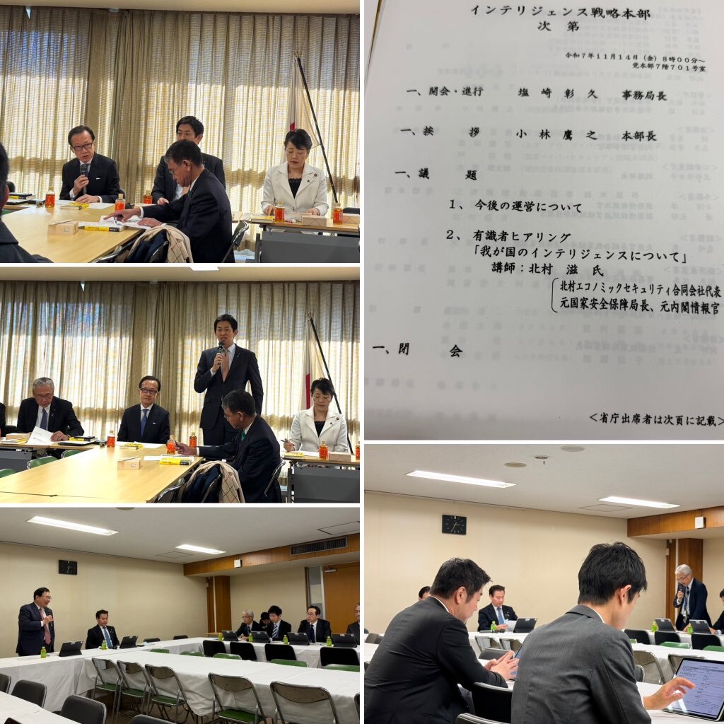 自民党本部にてインテリジェンス戦略本部に出席!本部長の小林鷹之政調会長の挨拶の後、国家安全保障局長や内閣情報官をつとめた北村滋氏を講師に迎えて「我が国のインテリジェンスについて」と題して有識者ヒアリングを行いました。財務金融部会では、ガソリン暫定税率廃止法案について条文審査をして pic.x.com/dAtoT8h7lZ