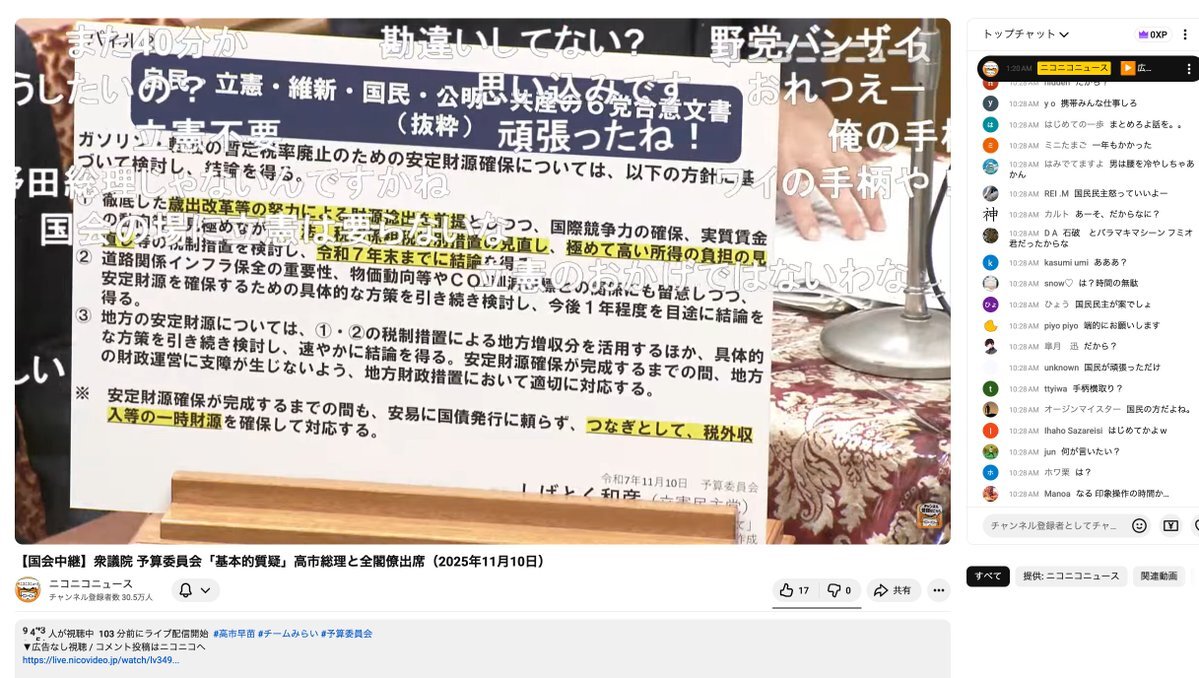 ガソリン暫定税率廃止法案成立、立憲民主が手柄を横取りしようとしてない? 衆議院 予算委員会 2025年11月10日 高市早苗総理 #国会中継 #立憲民主党にうんざり youtube.com/live/NimbLCZ5l… pic.x.com/FIVElpj3Id