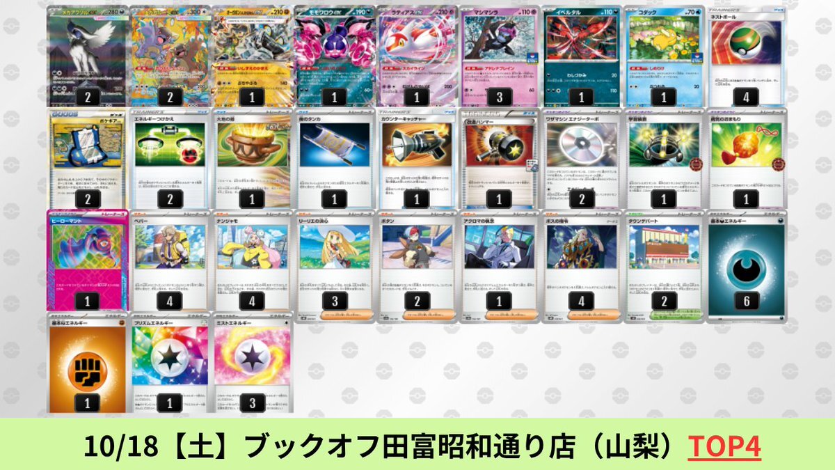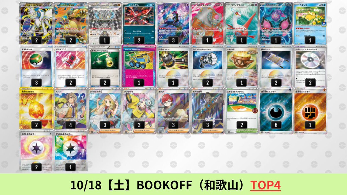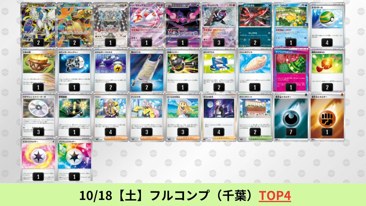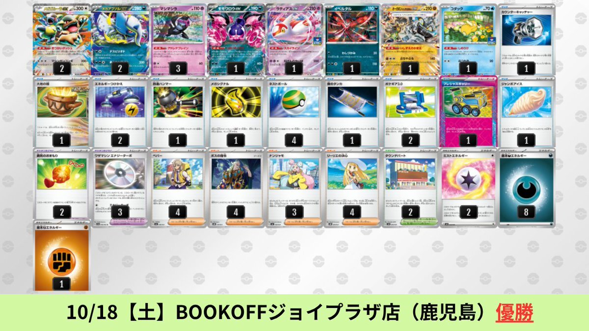 10/13【月】~10/18【土】 メガアブソルex+メガガルーラexのシティリーグ優勝デッキを掲載しました。 【メガアブソルex】環境デッキレシピまとめ pokecabook.com/archives/252045 pic.x.com/cXiLZcJqLl