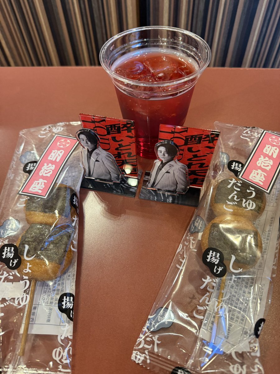 明治座での思い出(グルメ) 醉いどれBARではビールもカシスソーダも最高で…ラウンジのチョコケーキと赤ワインまで楽しんで…すっかり“酔いどれ”ました🤭🍷 大人気のお団子はやっぱりおいしかった😊近くのキスブサロケ地のハンバーガーも食べれて満足! #醉いどれ天使 pic.x.com/Gb1RUiv9FV