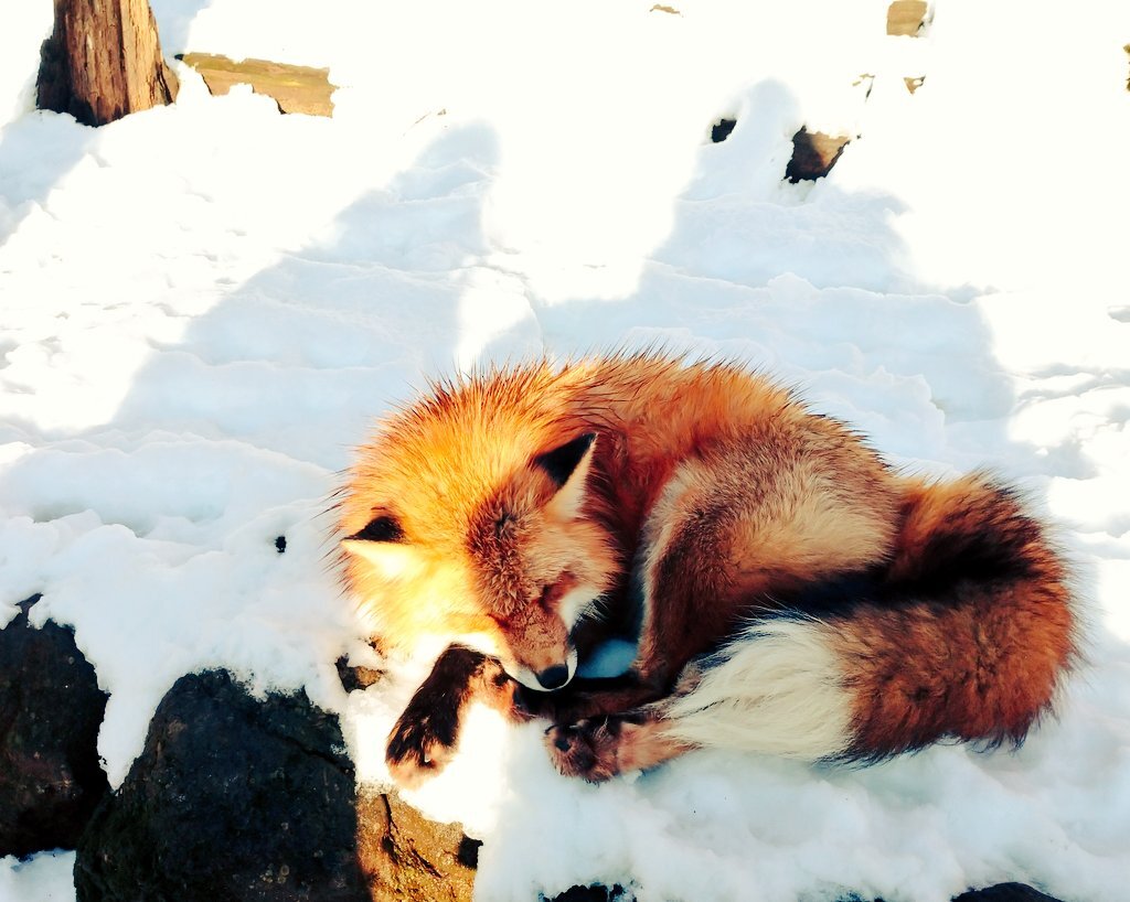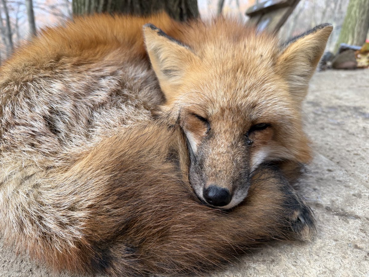 か、可愛い… 寒くなってきたからもふもふが丸まってる💕 久々に行きたいな、キツネ村x.com/kon_fox_villag…