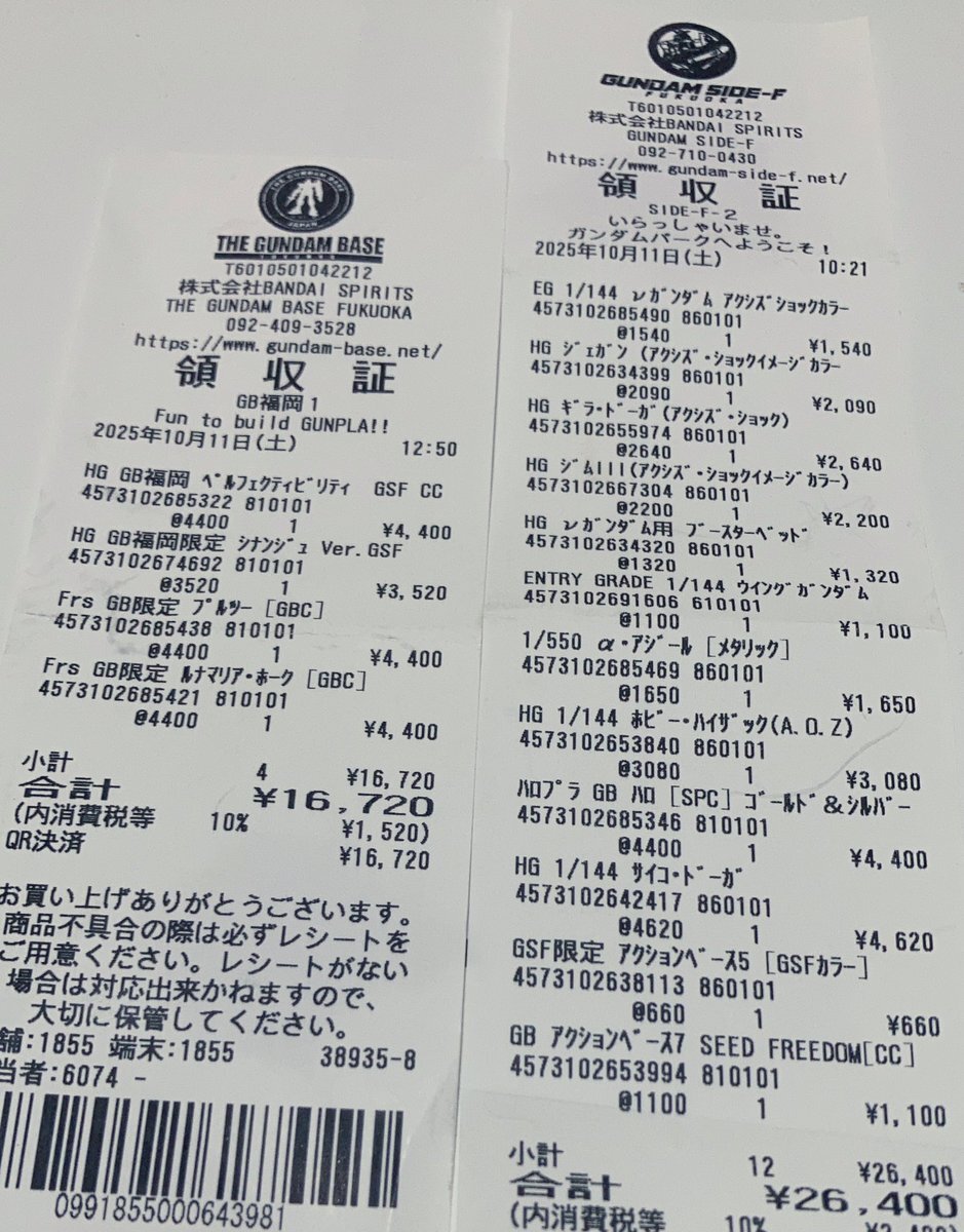 博多駅のとこの駿河屋のガンダムベース限定品とサイドF限定品の品揃えの良さが笑える。