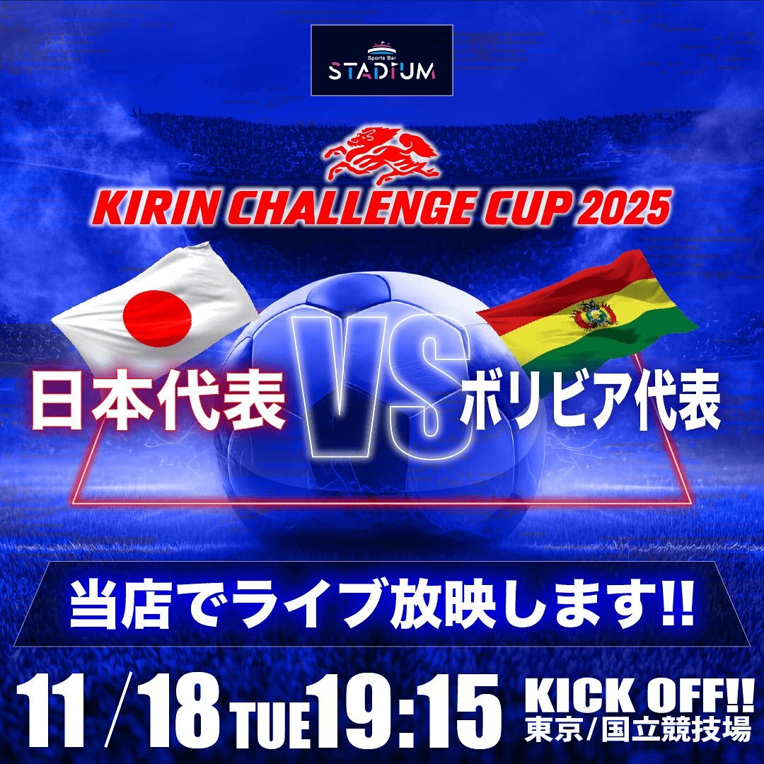 . 📣サッカー日本代表試合のお知らせ キリンチャレンジカップ2025⚽️ 11/18(火)19:15キックオフ 🇯🇵日本代表vsボリビア代表🇧🇴 スタジアムで応援しましょう🔥 ご来店状況により スタンディング観戦… instagram.com/p/DRI-CpPkv1D/ pic.x.com/pLg5d3Xh8R
