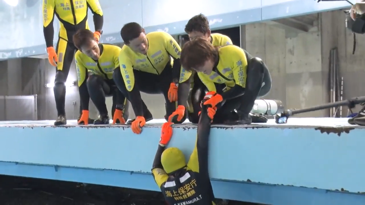 シューイチ 特救隊 過酷な水中訓練を学ぶ【Travis JapanのスタディーJAPAN】松田&松倉が海上保安庁・トッキュー隊に研修生として入隊 水泳の選手育成コースにも入っていた松倉が15kgものボンベを背負い荒波の中を泳ぐ #TravisJapan トラジャ #松田元太 #松倉海斗 #TVer tver.jp/episodes/epfoj…