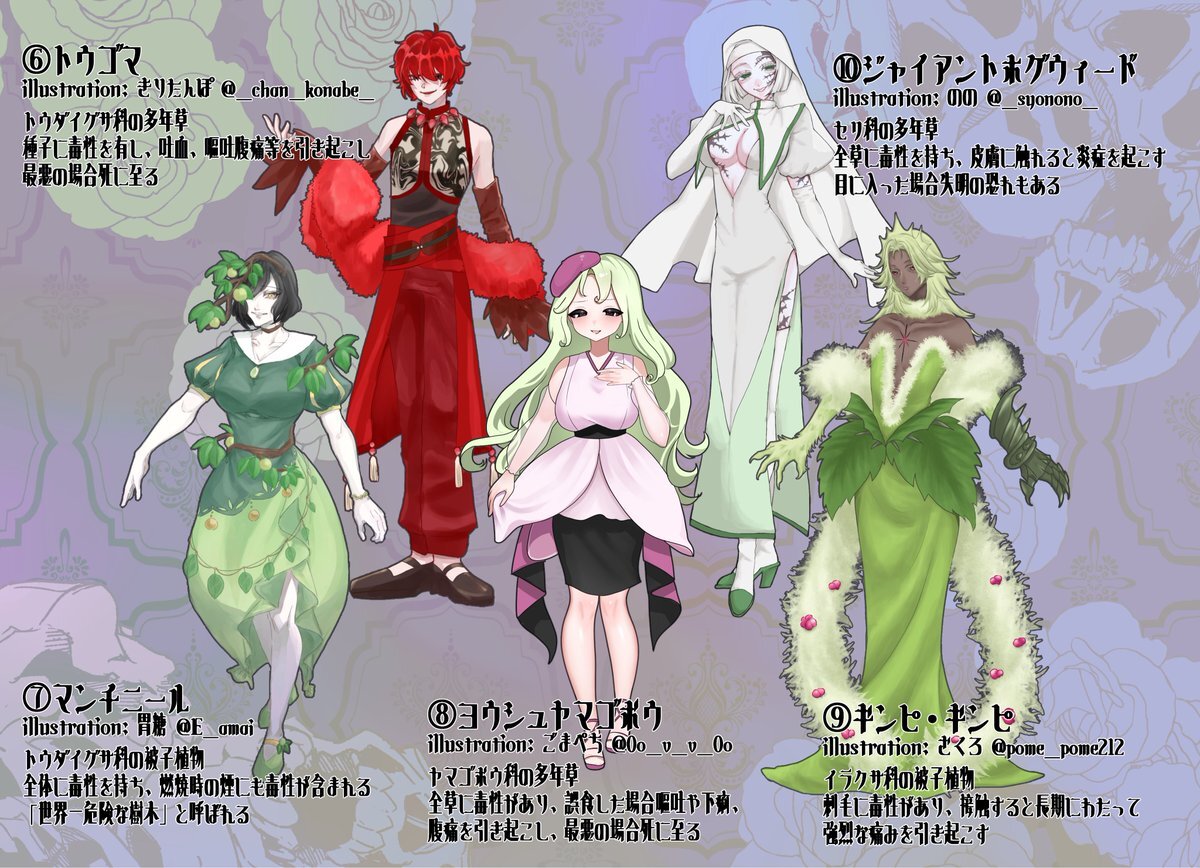 私主催『毒草誰デザ』開催させて頂きました❣️❣️ たくさんの方に素敵なデザをして頂いて感無量です🥰🥰🥰ありがとうございます❣️❣️❣️ ⑩ジャイアントホグウィードを描かせて頂きました😘😘 私のデザインした毒草はどれでしょう!!!ツリーにアンケート繋げます🌱 #ののの毒草誰デザ pic.x.com/MmH2uT3EyF