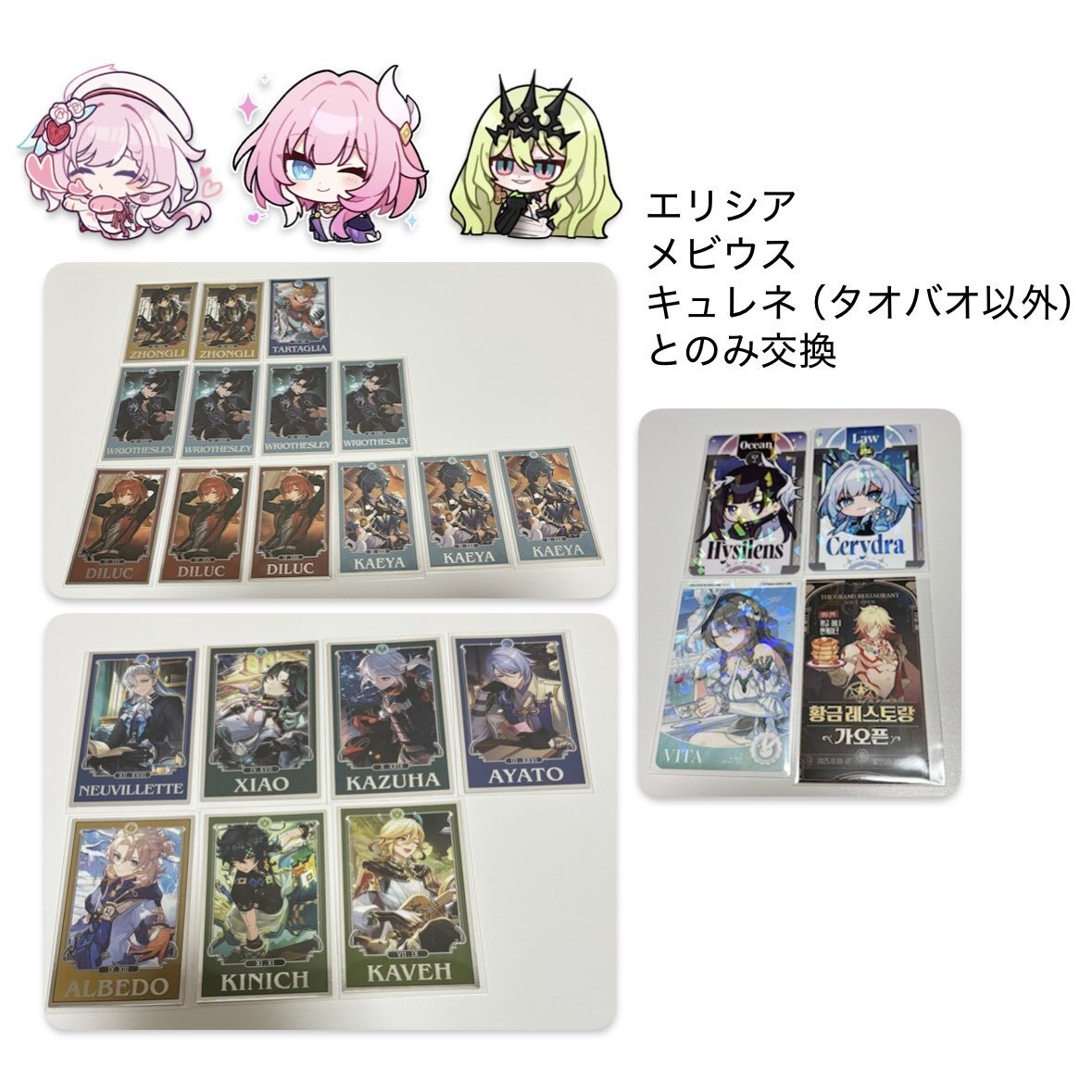 【交換】原神 崩壊3rd 崩壊スターレイル スタレ 求:エリシア メビウス キュレネ ナヒーダ 放浪者 タオバオ特典 韓国台北カフェ ステッカー他 譲:ホヨランド おみくじ 入場特典 フォトカード 七聖召喚 他 一部商品、キャラは比率相談。 郵送にてお願い致します pic.x.com/lqvYXvAIec