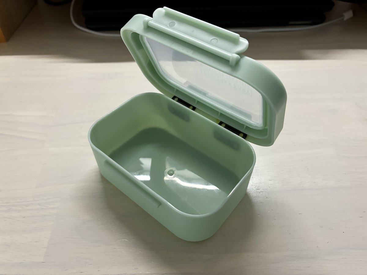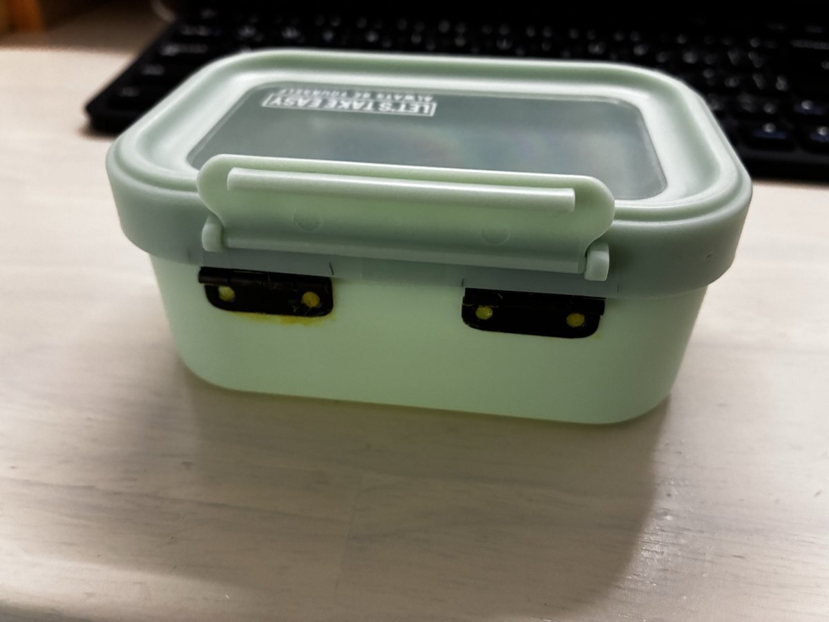 同じく100均で売ってる蝶番をセメダインで貼っただけのお手軽カスタム✂️ これで君は立派なエサ箱だ‼️ あとは通気孔開けて、ぶら下げ用の紐でも通そうかな😆 #自作 #DIY #セリア pic.x.com/QQoflMh8mi