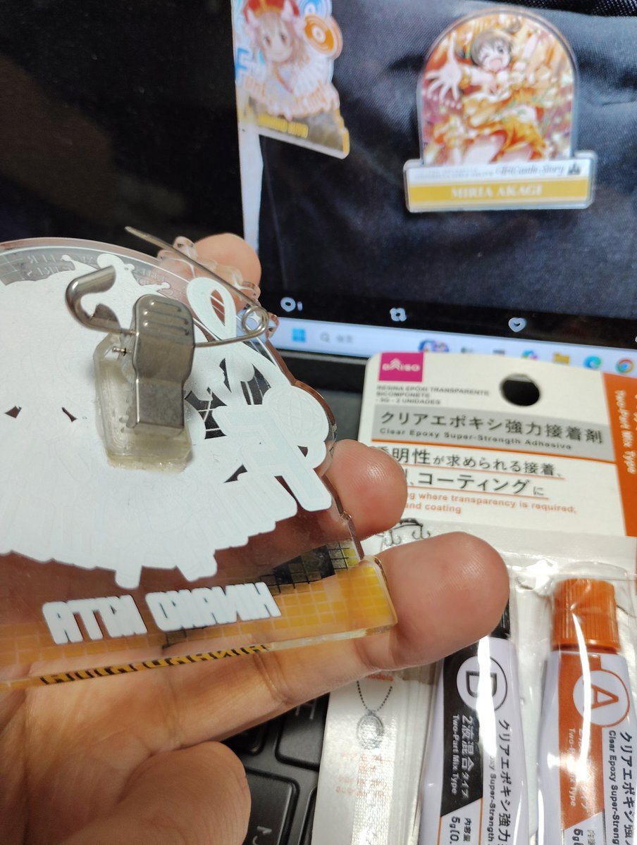 Kアリーナ2日目で飯屋で引っかけてクリップがとれてしまった日菜子アクリルバッジはダイソーのエポキシで補修できました 綱島ヨーカドーが残っていればセメダインのもっと強力で簡単なのが手に入っただろうと思うとつくづく残念 pic.x.com/RbF8T7tQ4L x.com/cemedinecoltd/…