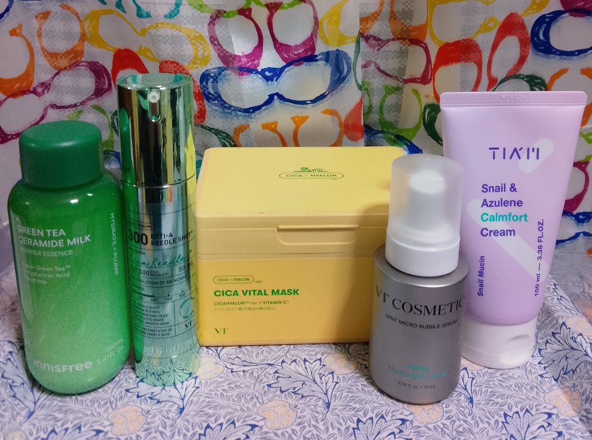 10/6 夜のスキンケア イニスフリー グリーンティーセラミドミルクエッセンストナー VT レチAリードルショット300 VT シカバイタルマスク VT バブルセラムPDRN ティアム スネイルアズレンカームフォートクリーム #スキンケア #40代 #フェイスマスク pic.x.com/Te4zpouVDK
