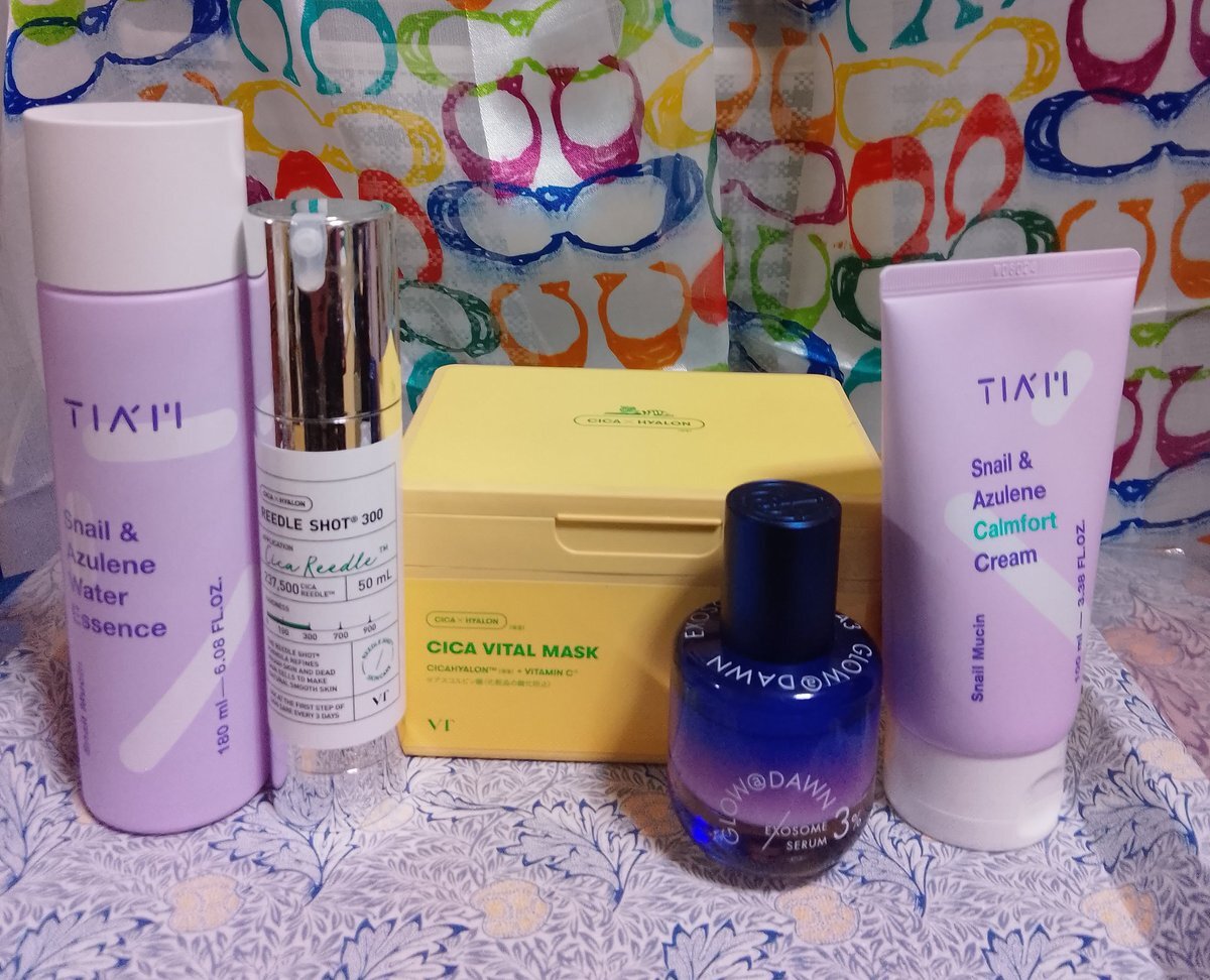 10/5 夜のスキンケア ティアム スネイルアズレンウォーターエッセンス VT リードルショット300 VT シカバイタルマスク GLOW@DAWN 1stエクソソームエクストラ3%セラム ティアム スネイルアズレンカームフォートクリーム #スキンケア #40代 #フェイスマスク pic.x.com/z0GcMvvFyQ
