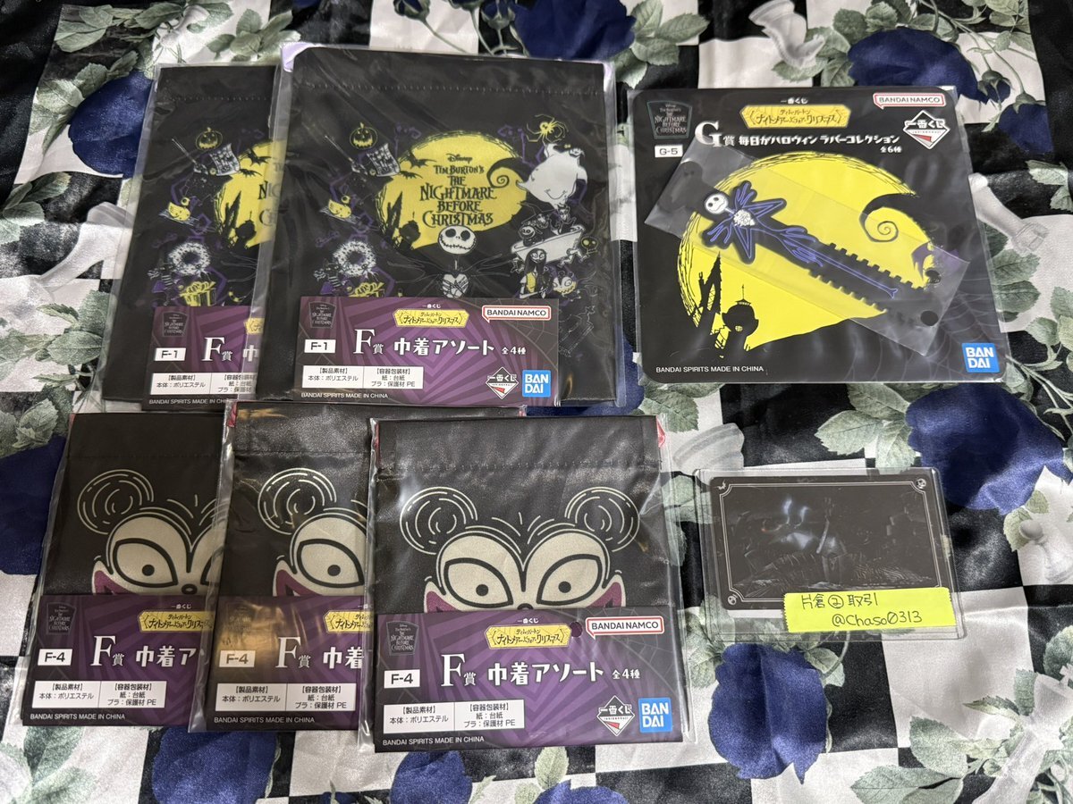 ナイトメアビフォアクリスマスの一番くじ届きました!!!!!一番くじのオンラインは初めてだったのですが、並んでもどんどん無くなっていって、なんとか3回引けました( ˊᵕˋ ;)いつも巾着を使って小物を持ち歩いているのでF賞すごく嬉しいです( ˘ω˘ 🫶)使うぞー!!!!! pic.x.com/rL2hI4pYHU