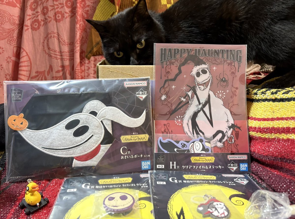 一番くじのナイトメアビフォアクリスマスの景品やっと届いた!(黒猫がひたすら撮影妨害してきた pic.x.com/dpOhG33GG3