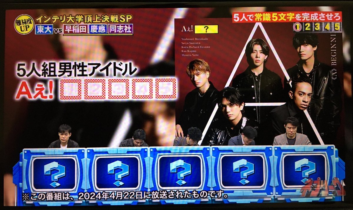 何気なく見ていたネプリーグの再放送でちょうどAぇǃgroupの問題が出てきて非常にタイムリーだなぁと思いました pic.x.com/p0CraJaaPv