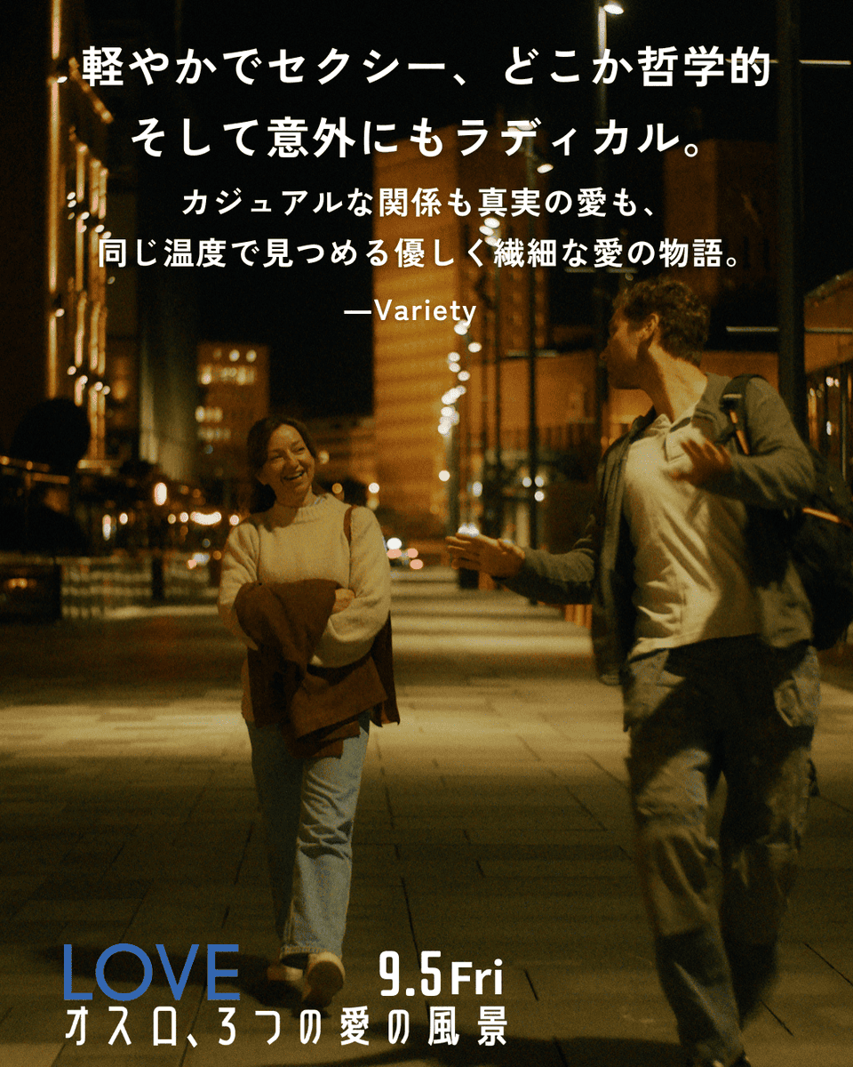 ⋰ 特集上映「オスロ、3つの愛の風景」 🟦#LOVE 𝗥𝗘𝗩𝗜𝗘𝗪 ⋱ "軽やかでセクシー、どこか哲学的 ――そして意外にもラディカル。" ー𝗩𝗮𝗿𝗶𝗲𝘁𝘆💬 𝗕𝘂𝗻𝗸𝗮𝗺𝘂𝗿𝗮ル・シネマ 渋谷宮下、ヒューマントラストシネマ有楽町ほか全国順次ロードショー! 𝟵.𝟱 𝗙𝗿𝗶 #オスロ3つの愛の風景 🇳🇴