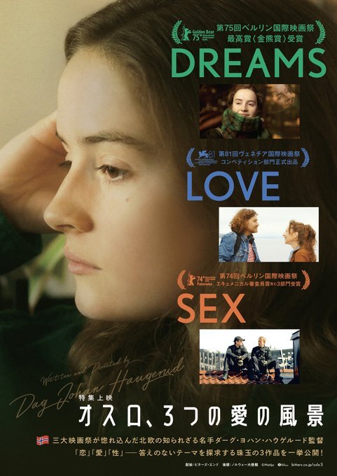 恋の陶酔『DREAMS』、愛の考察『LOVE』、性の再考『SEX』ダーグ・ヨハン・ハウゲルード監督の3作品を一挙公開「オスロ、3つの愛の風景」 | BANGER!!! =banger.jp/news/141806/ #BANGER ---第2週(連日15:00)--- 10/12(日)15(水)→DREAMS 10/13(祝)16(木)→LOVE 10/14(火)17(金)→SEX